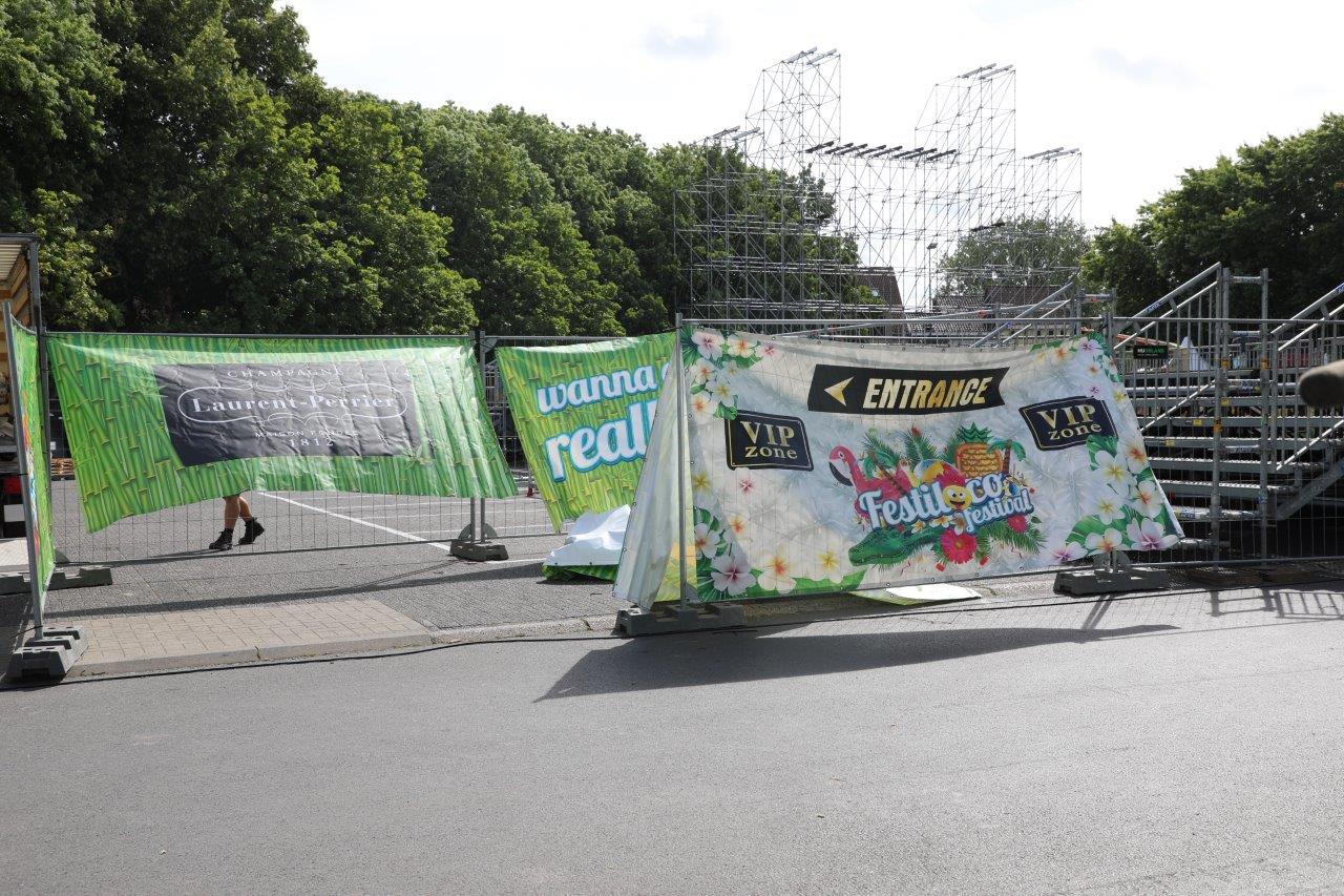 Manu: “Alles verloopt volgens plan. In totaal komen hier 3 podia, 2 grote tenten, 2,2 km afsluithekken, dranktenten en toiletzones. Om de bezoekers een maximale beleving te bezorgen, hebben we ook 16 danseressen en dansers geboekt. Zij fleuren de optredens op en zorgen mee voor een super ambiance. Tijdens het optreden van Frank Verstaeten zullen extra danseressen het podium kleuren. Zaterdag 13 juli zal een dag zijn om je foute en stoute schoenen aan te trekken en eens goed uit de bol te gaan. We willen het publiek op zoveel mogelijk verschillende feestmuziek volledig zien loco gaan.”