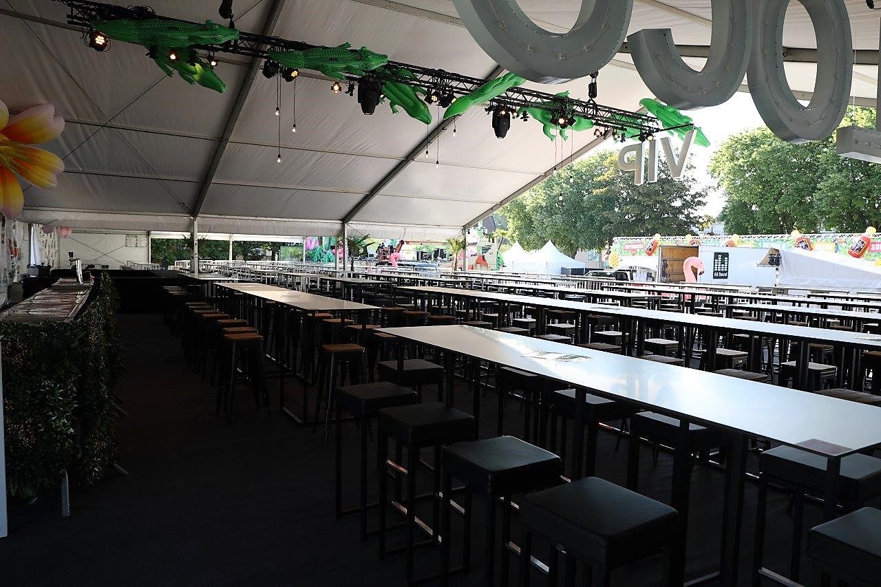 Op de 3 feestlocaties nadert de afwerking, kunnen de frigo’s worden gevuld en de vaten aangesloten. Geen overbodige luxe met de voorspelde weerverwachting.