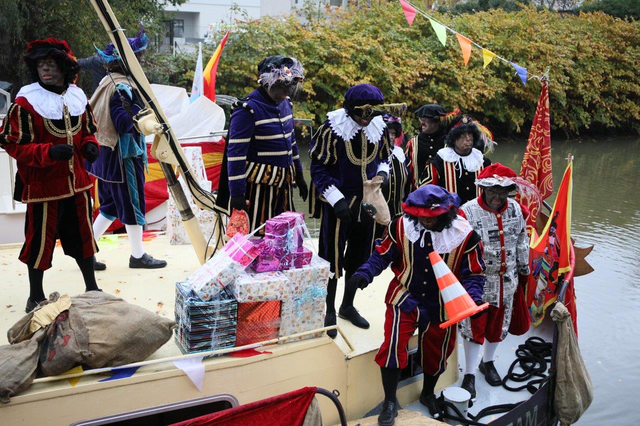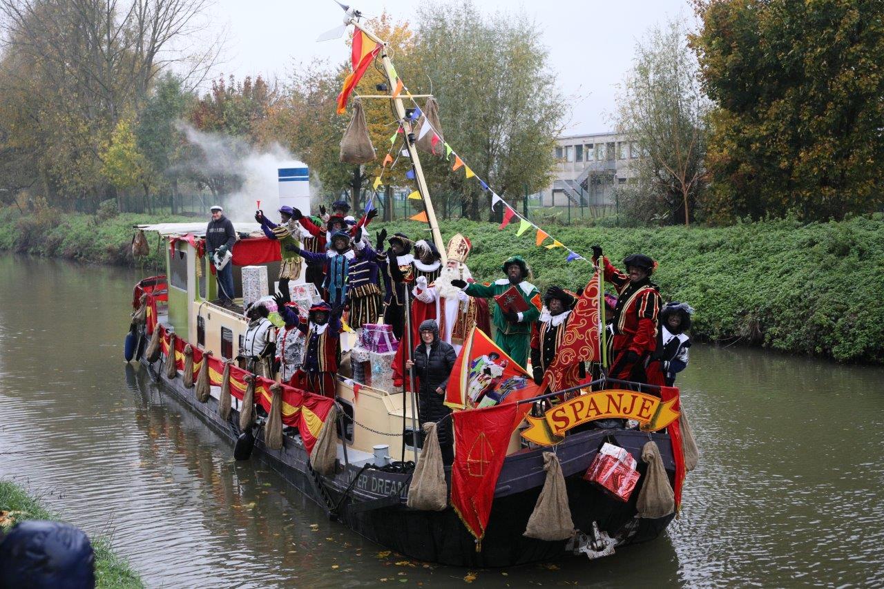 Rond 14 uur kwam de vloot Ninove binnen gevaren: de muziekboot met de Pietenfanfare en de Sintboot Burgemeester Tania De Jonge en haar schepenen Marc Torrekens, Alain Triest en Katie Coppens verwelkomden de goedheilige man en zijn 20 roetpieten.