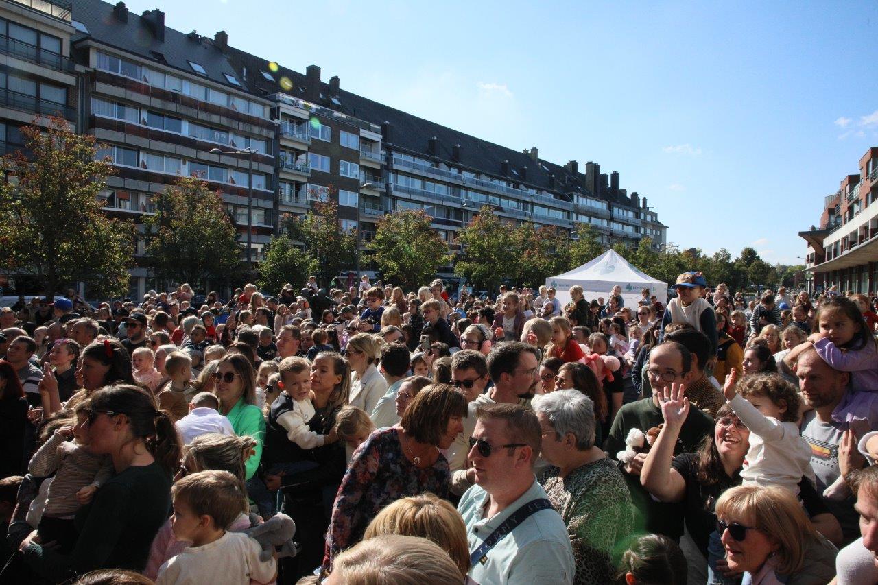 Er was veel volk opgedaagd, zowel kinderen als ouders. Volgens sommigen waren de enthousiaste papa’s in de meerderheid om de hits van deze beroemde tv-figuren mee te zingen. De Samsonrock en vele andere liedjes van deze publiekslievelingen weerklonken dan ook uit honderden kelen over het zonovergoten Niniaplein.