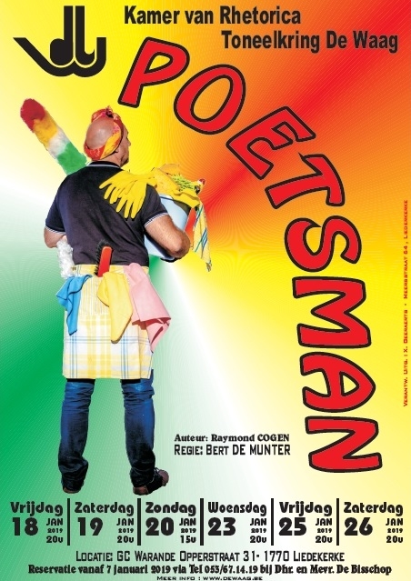 LIEDEKERKE – Wie houdt van theater met een lach en een traan mag in januari 2019 zeker ‘Poetsman’ niet missen, de nieuwste productie van Toneelkring De Waag. Het stuk van – de voor de toneelliefhebbers zeker gekende – Raymond Cogen is onder handen genomen door regisseur Bert De Munter, die zelf ook al heel wat op zijn palmares heeft staan.