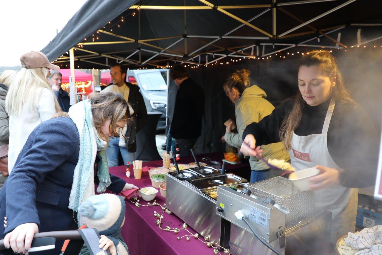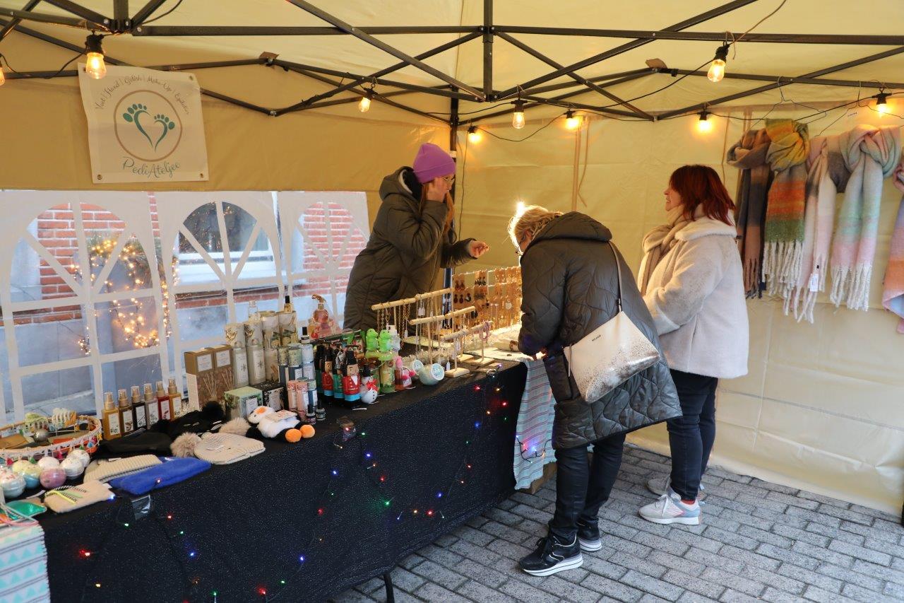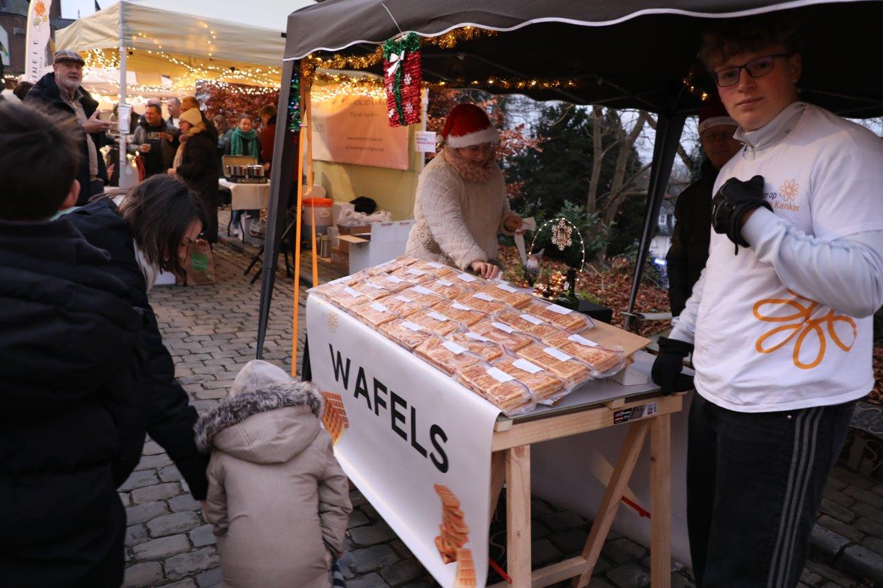 In totaal boden een 40-tal kraampjes van handelaars en verenigingen kerst- en andere artikelen aan. Natuurlijk stond ook een groot aantal drank- en eetstandjes opgesteld.