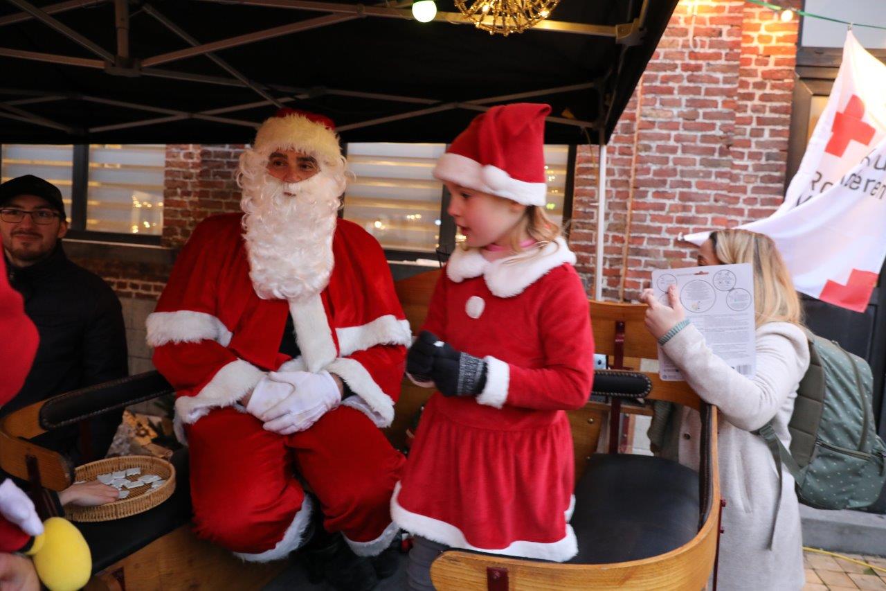 De Kerstman en zijn elfje deelden snoepjes uit op de binnenkoer van het parochiaal centrum.