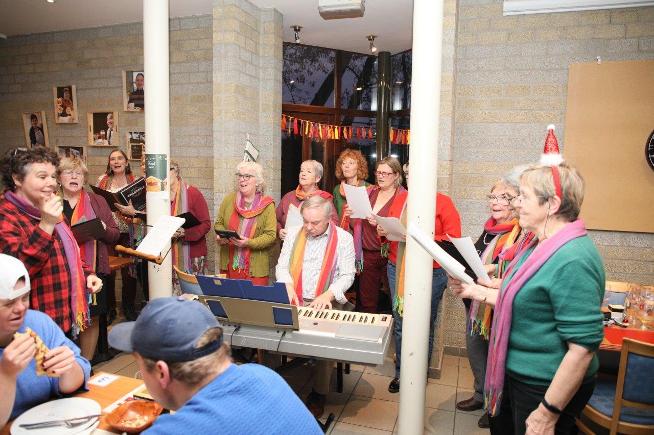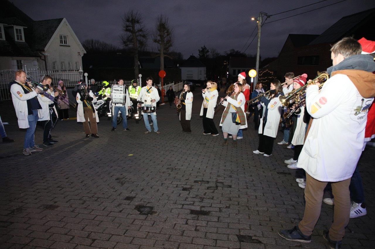 Aan ambiance geen gebrek met de studentenfanfare ‘Ghendt’ en de streetband ‘Uit de klakke’. In het parochiaal centrum traden Jens en Mary&The Seabirds op. Jan Trompet speelde in het café.