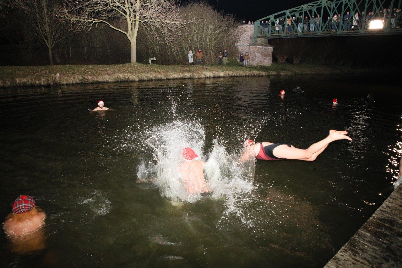 De Dender was dan weer de plek waar je de ‘ijsberen’ kon zien duiken in het 9,8 °C koude water. Vele toeschouwers kregen er zelf rillingen van.
