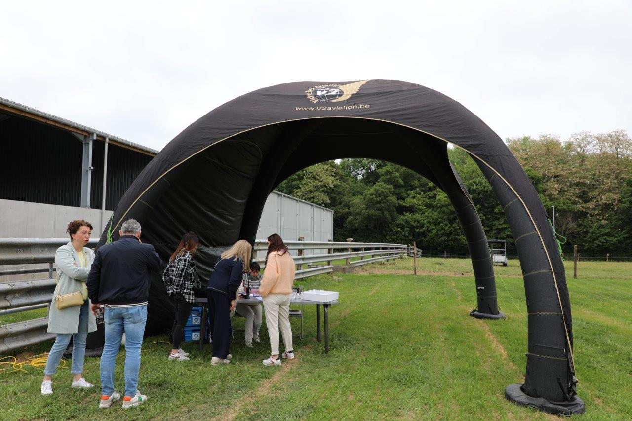 De eerste vlucht vertrok om 11.45 uur met Nancy, Edmond en Luca aan boord. “Dit is een zeer fijn initiatief voor de klanten”, vertelde Nancy. “We zijn zeer blij om de streek eens op een andere manier te bekijken. Het zou fijn zijn als ook andere handelaars zoiets voor hun klanten zouden organiseren.”