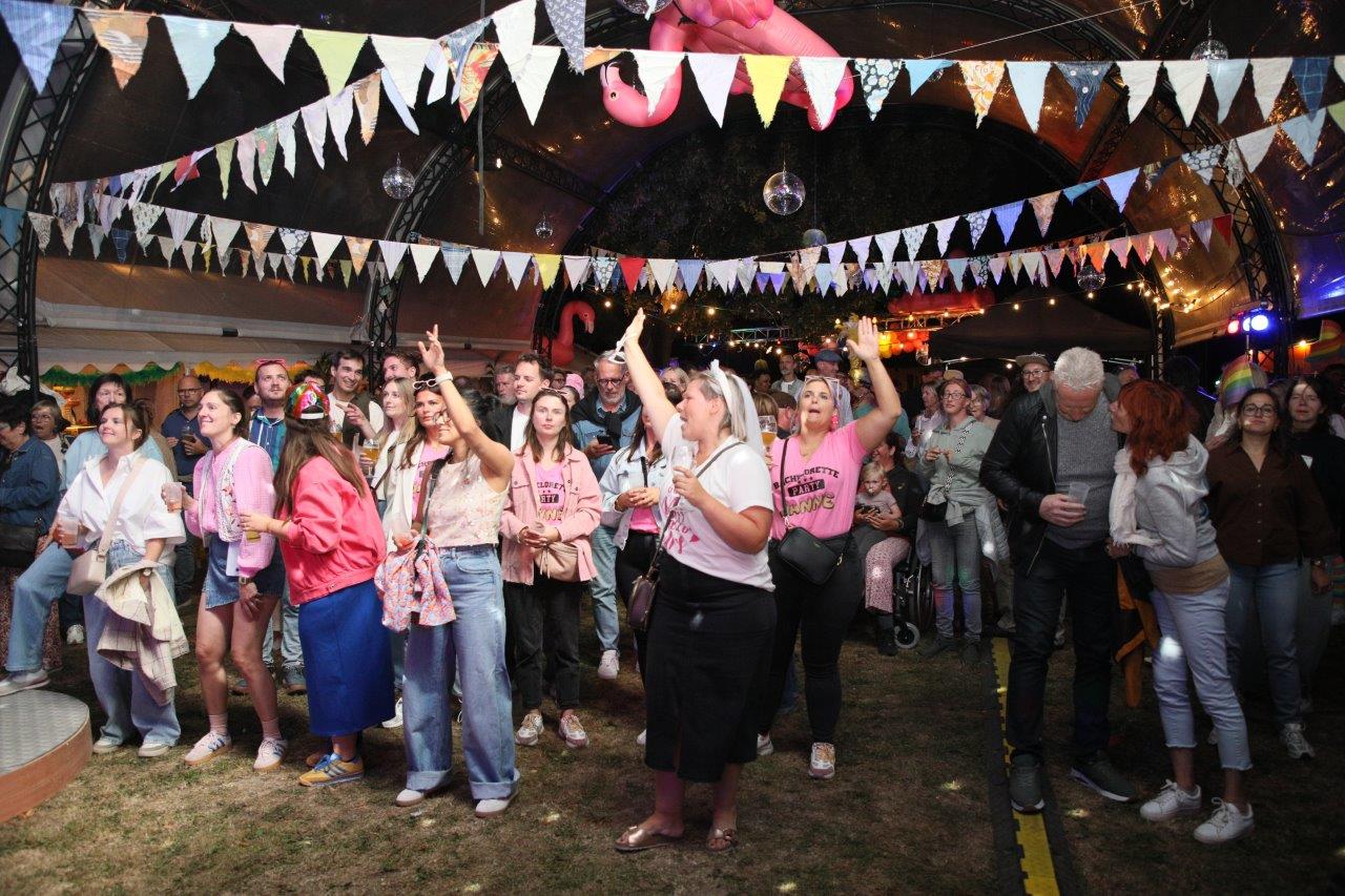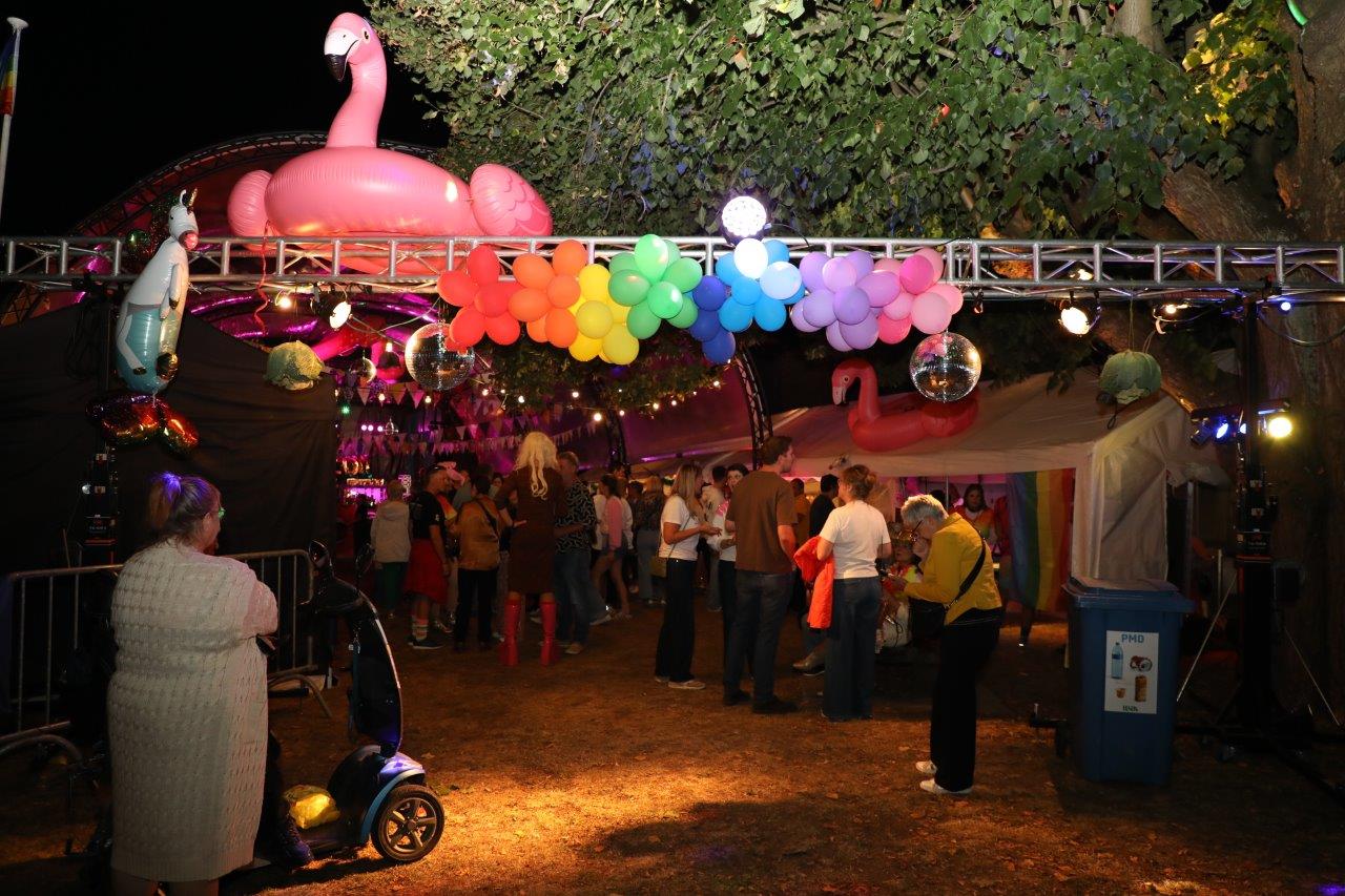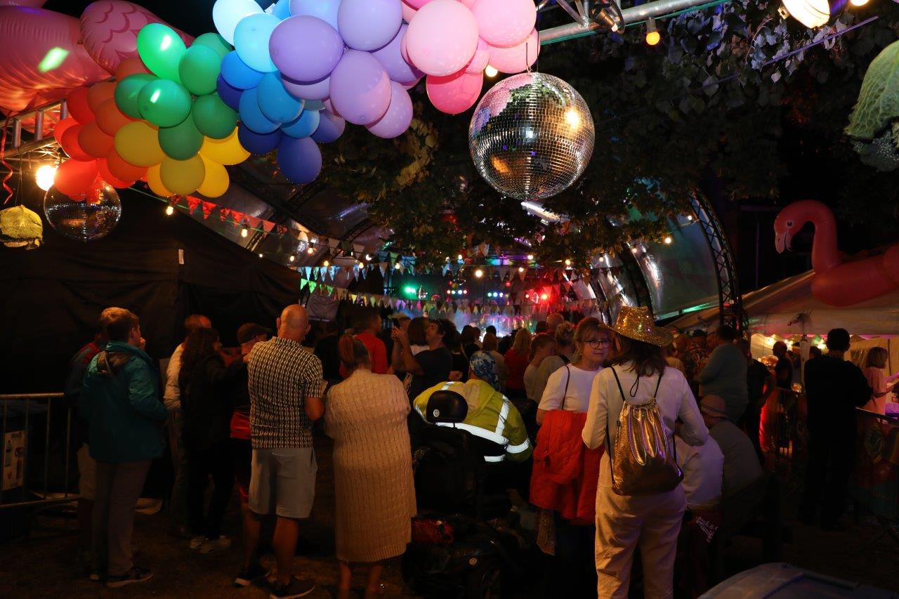 De locatie was mooi aangekleed met kleurrijke vlaggetjes, discobollen en flamingo’s.