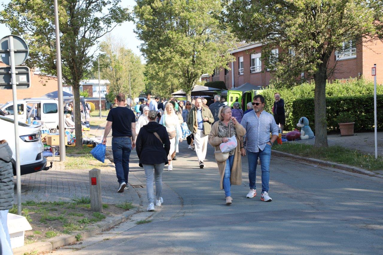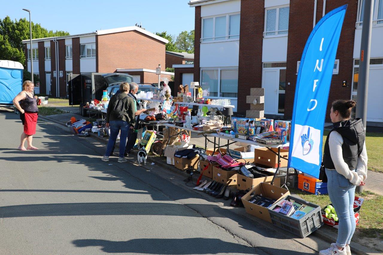 Tijdens de garageverkoop en rommelmarkt was de hele wijk Groeneweg verkeersvrij; je mocht er enkel te voet of met de fiets in.
