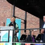 Burgemeester Tania De Jonge maakte van de gelegenheid gebruik om meteen ook het nieuwe logo van de stad voor te stellen.