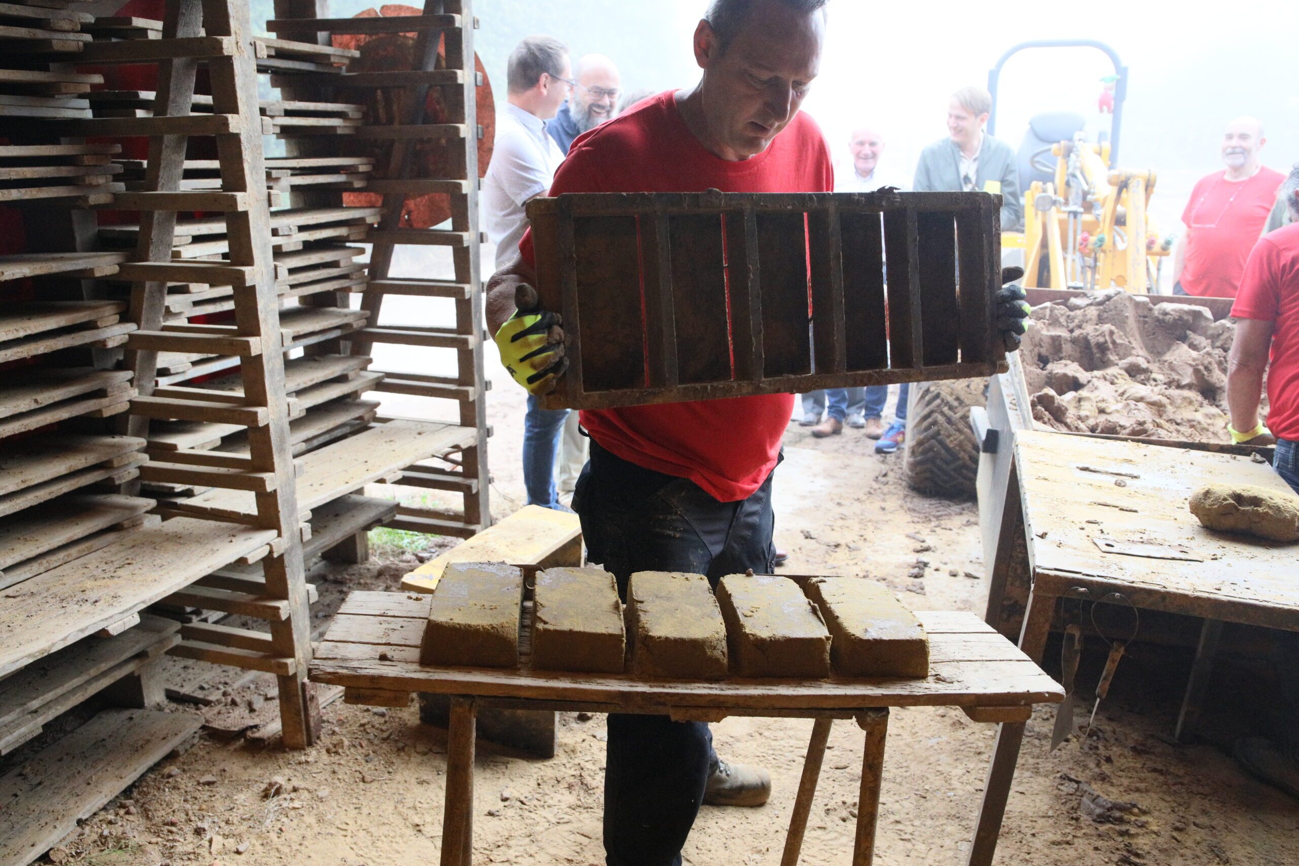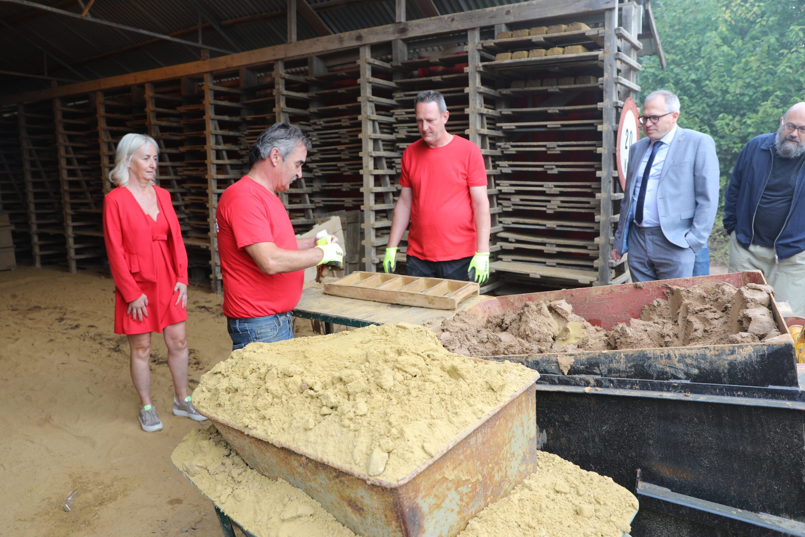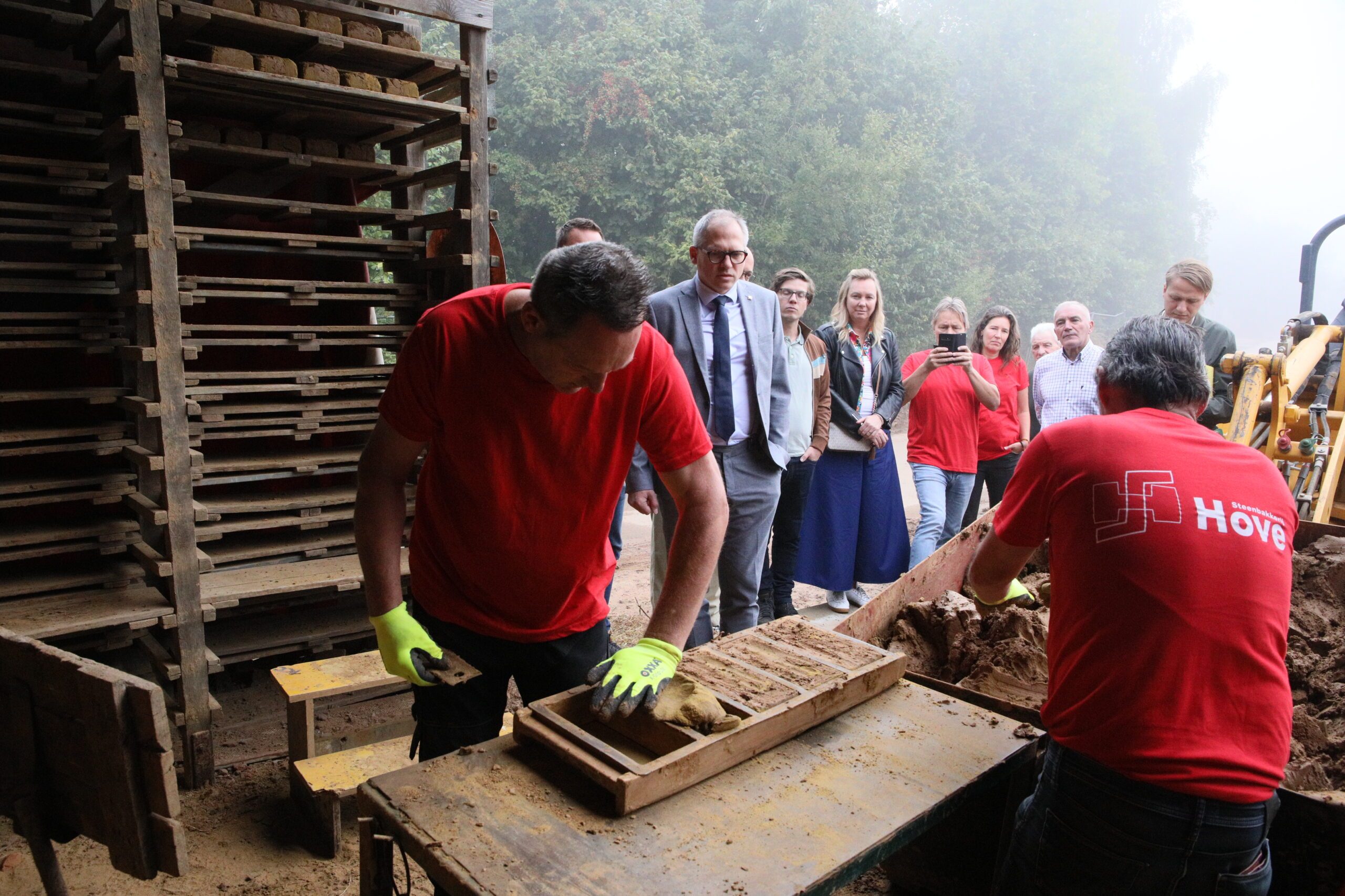 Steenbakkerij Hove maakt immers heel wat stenen voor de restauratieprojecten van beschermde monumenten in Vlaanderen. De minister was dan ook echt geïnteresseerd om de uitleg te horen over het fabricatieproces.