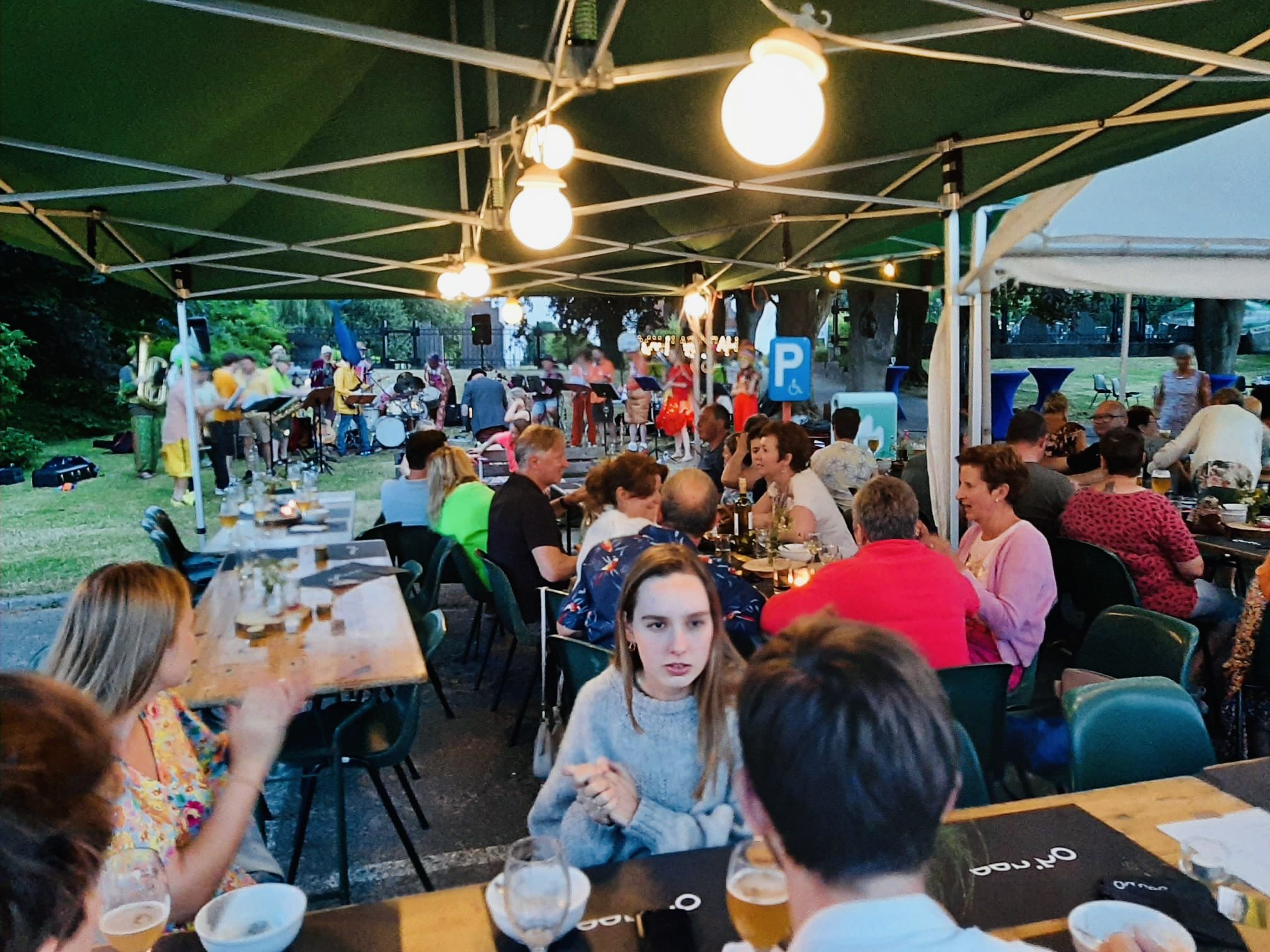 Yah Tararah! mocht daarna aantreden. Die ludieke groep muzikanten staat altijd garant voor een gezellige ambiance. Naderhand konden de danslustigen de beentjes strekken op aanstekelijke plaatjes. De sfeer zat er goed in.