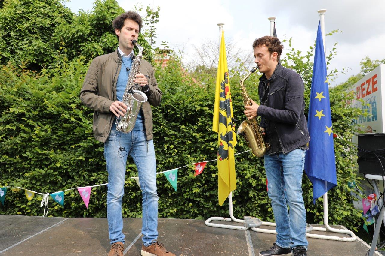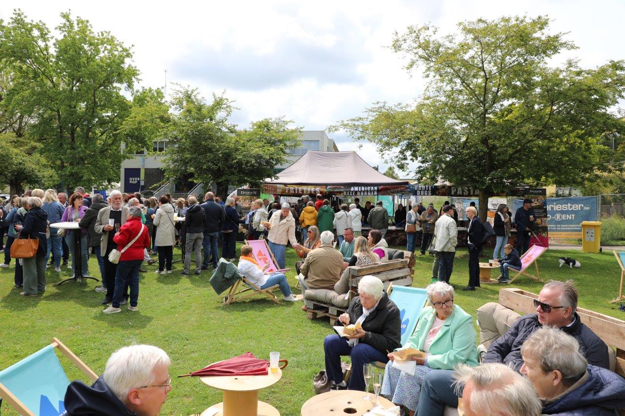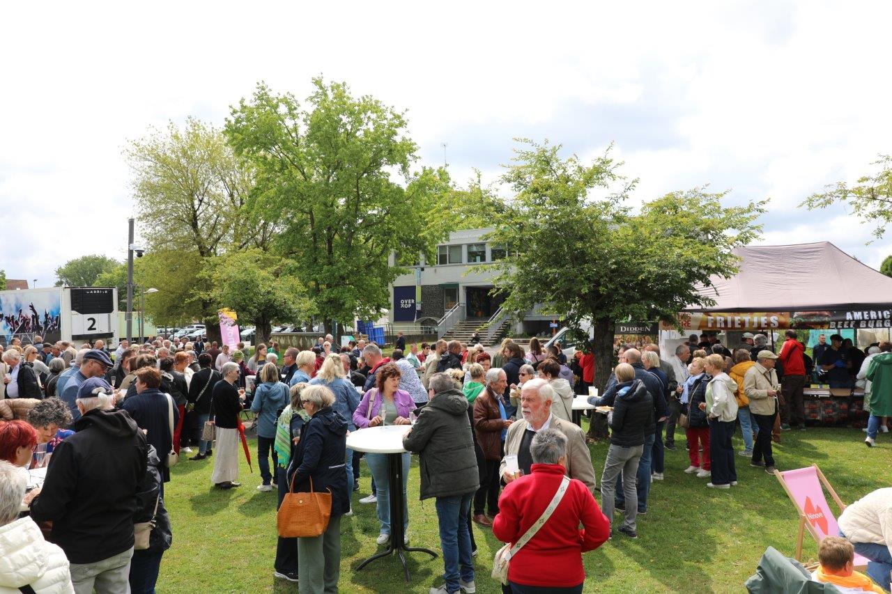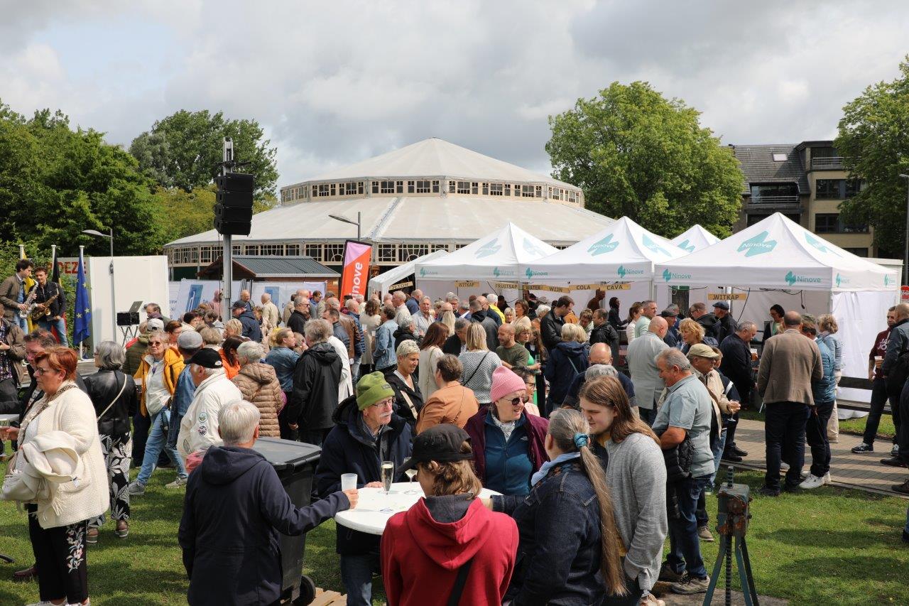 Deze had plaats in de omgeving van de spiegeltent aan de rand van het stadspark. De stad trakteerde op hapjes, Witkap, andere drankjes en een streepje muziek van de Sax Guys.