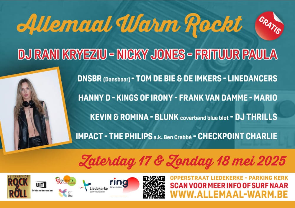 De affiche oogt alvast indrukwekkend met een Schlagernamiddag en een kindernamiddag, optredens coverbands (o.a. The Philips met o.a. Ben Crabbé en Jan Hautekiet), dj’s. Alle details en de tijdsschema’s vind je op de webstek.