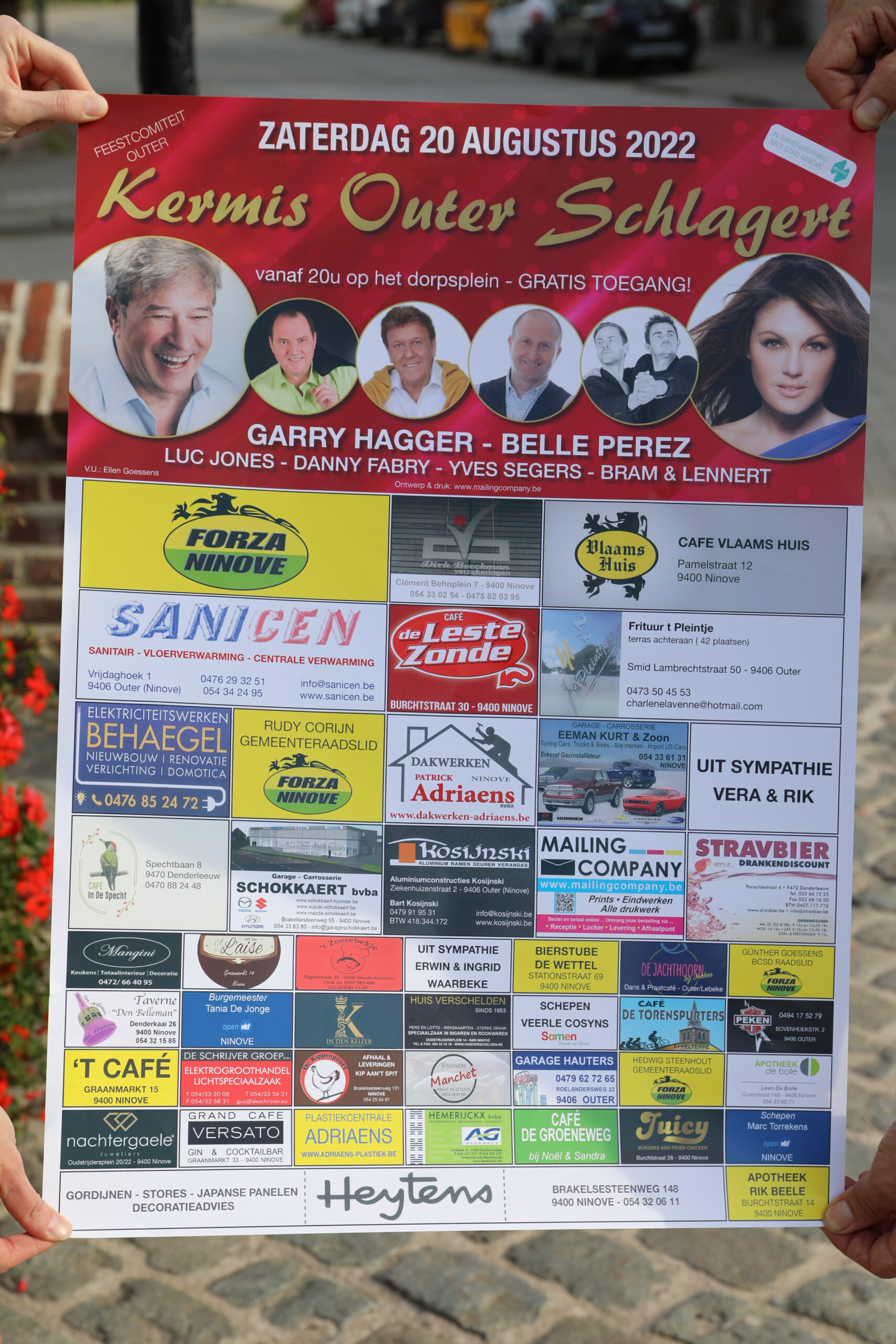 Gunter Goessens: “We hebben opnieuw een avondvullend programma uitgewerkt om voor sfeer te zorgen in Outer. De verschillende optredens starten vanaf 20 uur met een optreden van Ninovieter Luc Jones. Nadien is het de beurt aan Danny Fabry, ambiancemaker Yves Segers, Garry Hagger en niemand minder dan Belle Perez. Afsluiten doen we traditiegetrouw met Bram&Lennert”.