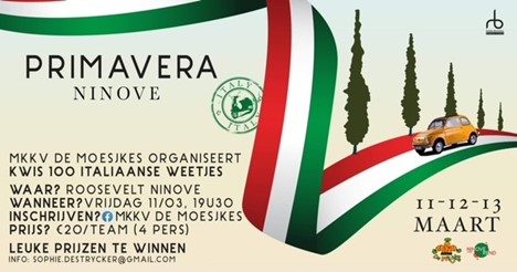 - Ninoverend organiseert vrijdag 11 maart in samenwerking met MKKV De Moesjkes en café Roosevelt een Italiaanse quiz om 19.30 uur in het café zelf.