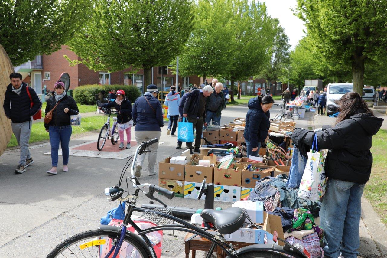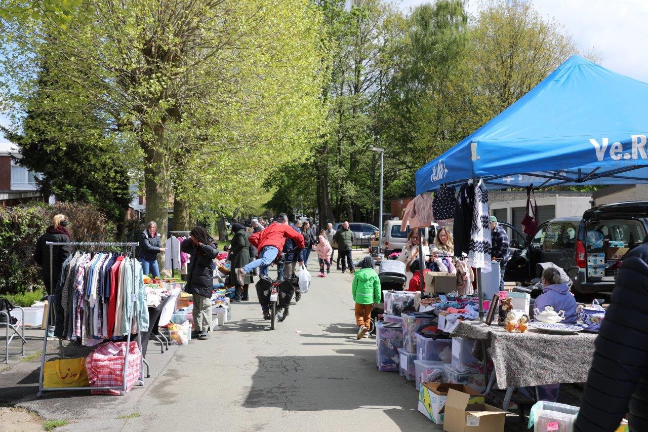Het was er gezellig kuieren tussen standjes, je kon een koopje op de kop tikken bij de plaatselijke bewoners of aan een standje van een verkoper van buiten de wijk.