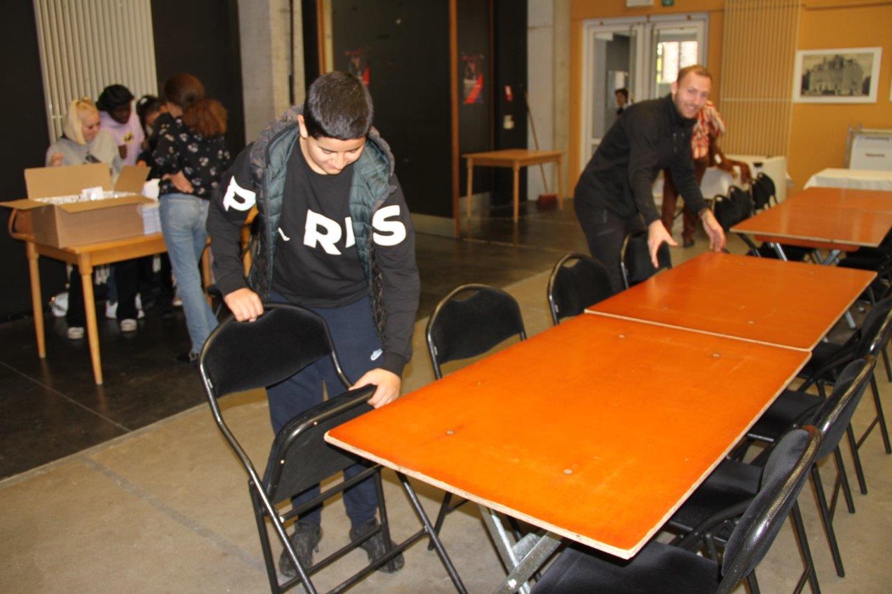 Tijdens het eetfestijn zelf, staken zondag 6 november ook een aantal bewoners en begeleiders van Zonnestraal uit Lennik de handen uit de mouwen. Zij stonden onder meer in voor het afruimen en de afwas.