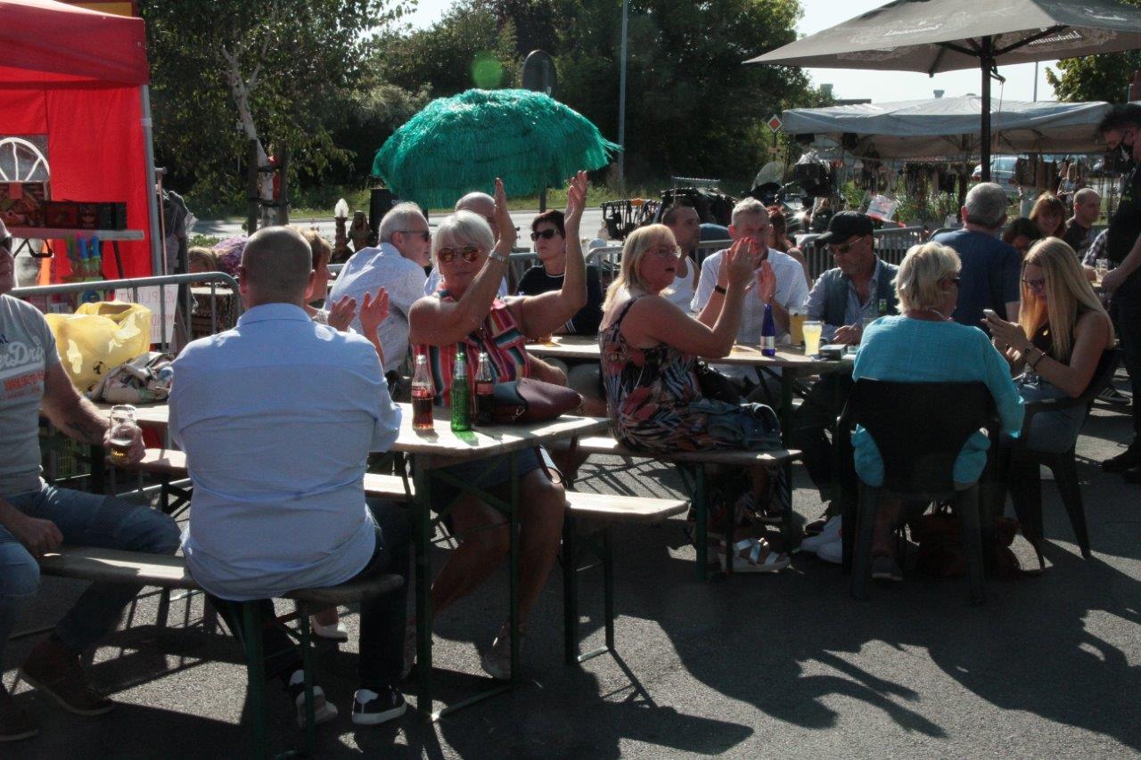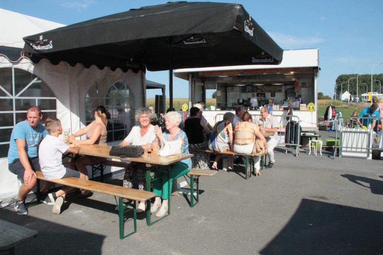 Mede door het prachtige weer was het gezellig toeven op de terrassen vanwaar men kon genieten van de optredens. Een mooi initiatief van uitbaatster Sarita Haegeman, die tevreden was van de eerste editie.