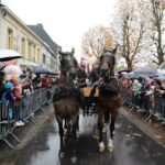 Rond 14 uur kwamen de Pieten met een eerste paardenkar de Denderkaai opgereden, voorafgegaan door de pietenfanfare, die per tractor arriveerde.