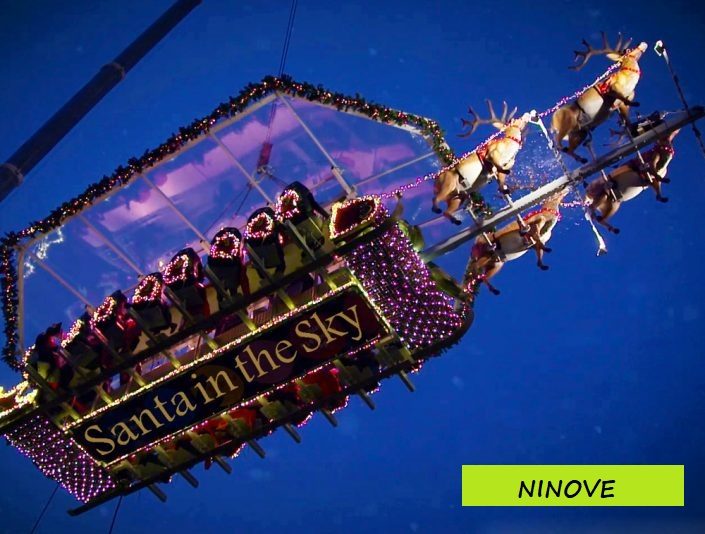 Op andere dagen kan je gezellig zittend genieten van de Santa Sky Watch: een attractie, waarop 25 mensen samen 50 meter hoog de lucht ingaan met de kerstman en zijn slee.