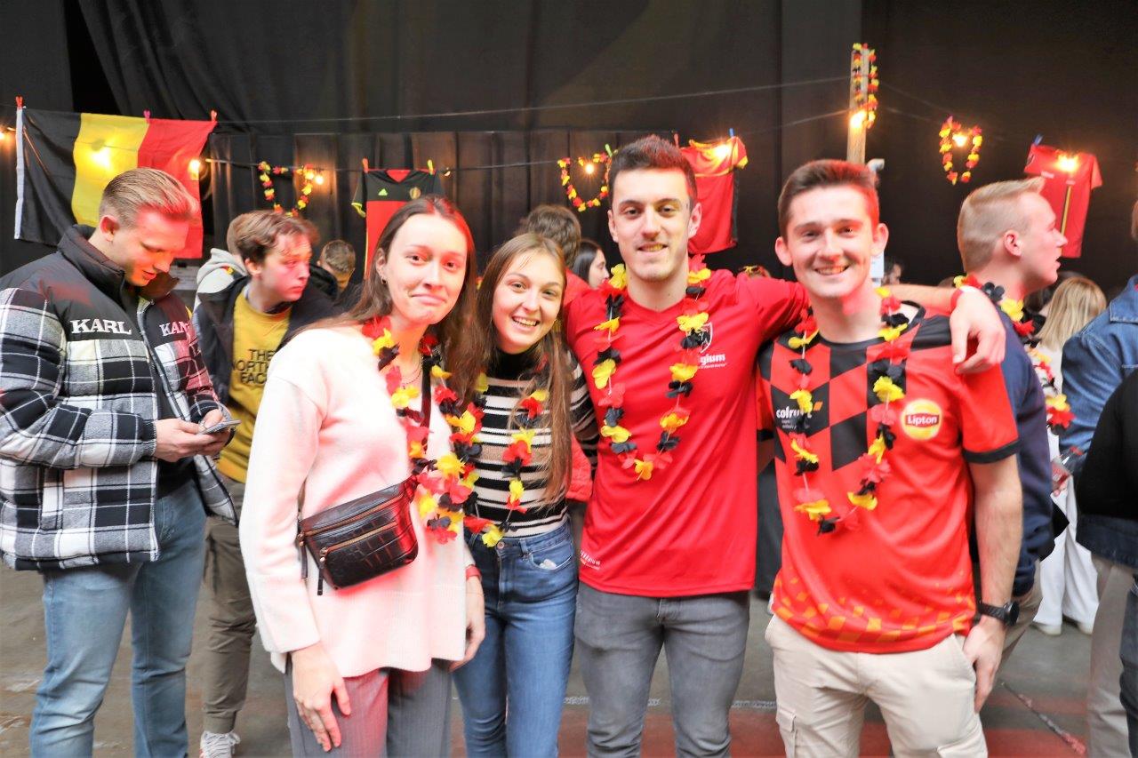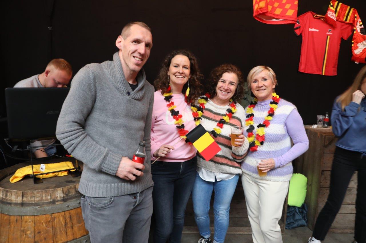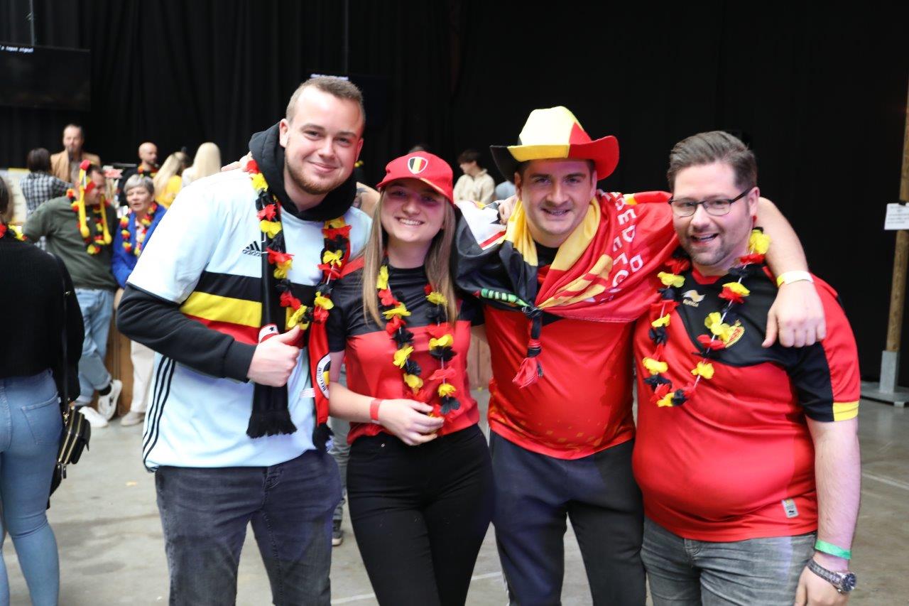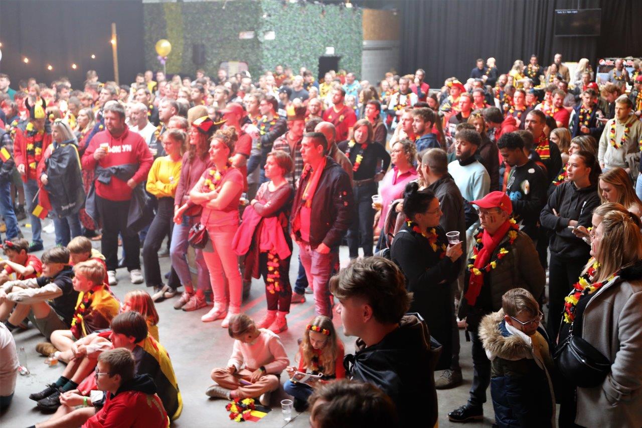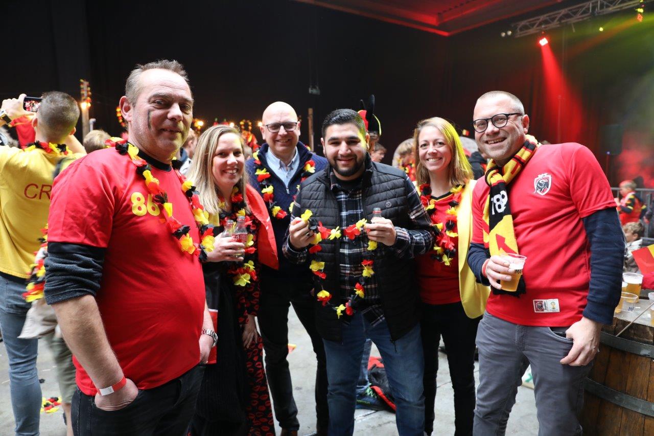 De sfeer zat er aanvankelijk goed in en de aanwezigen waren uitgedost in de kleuren van onze nationale ploeg.