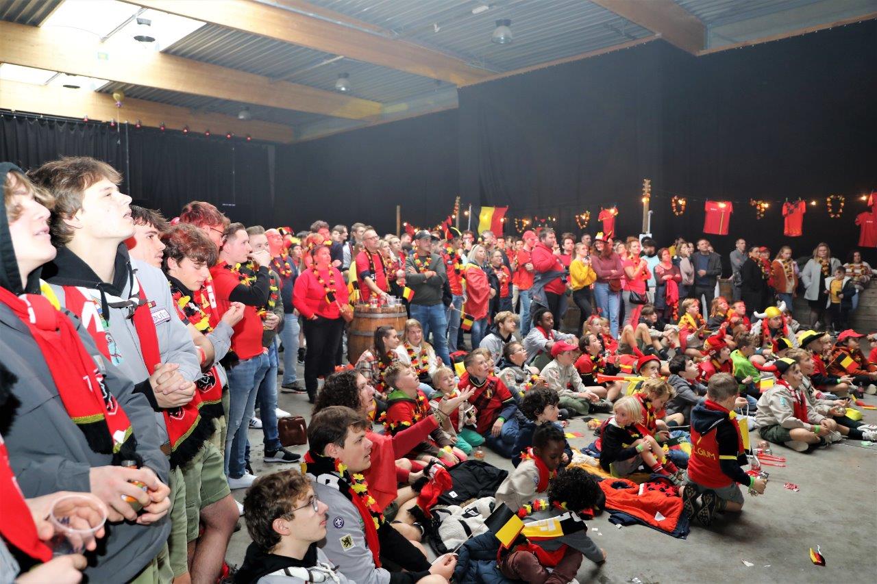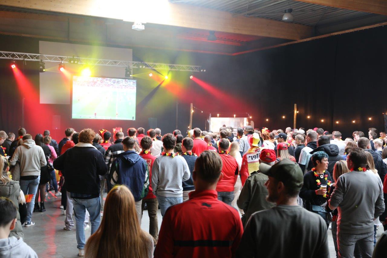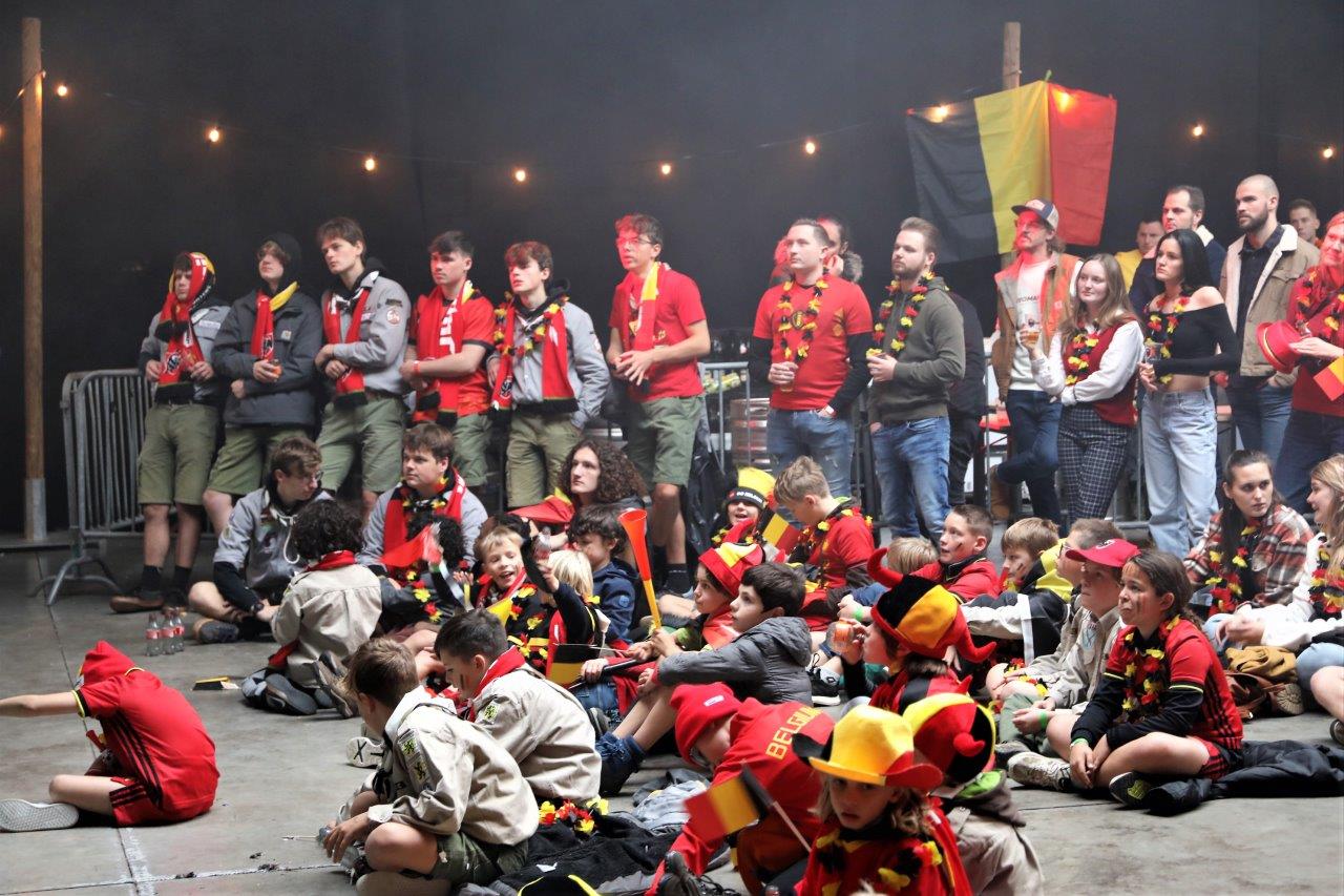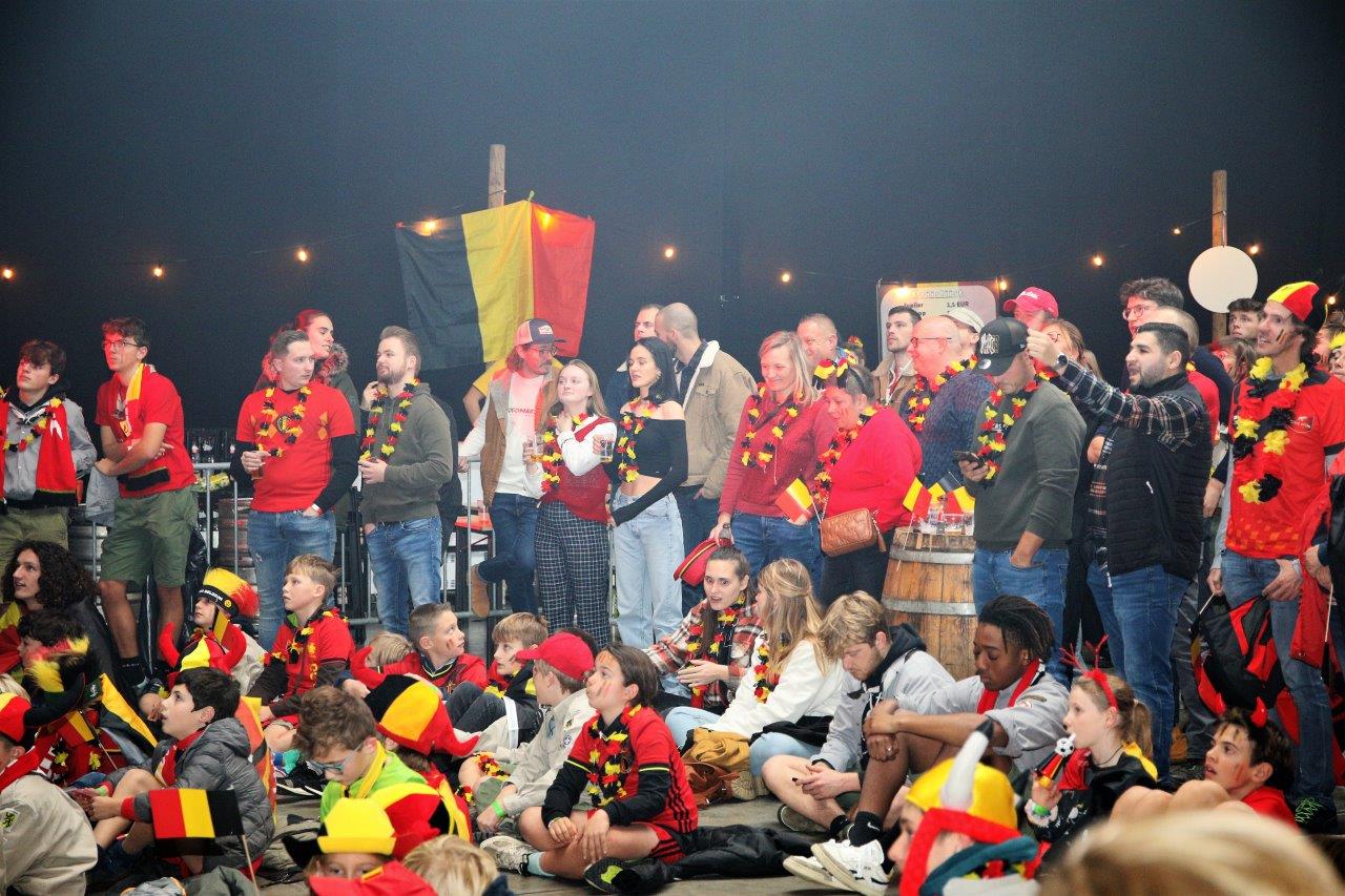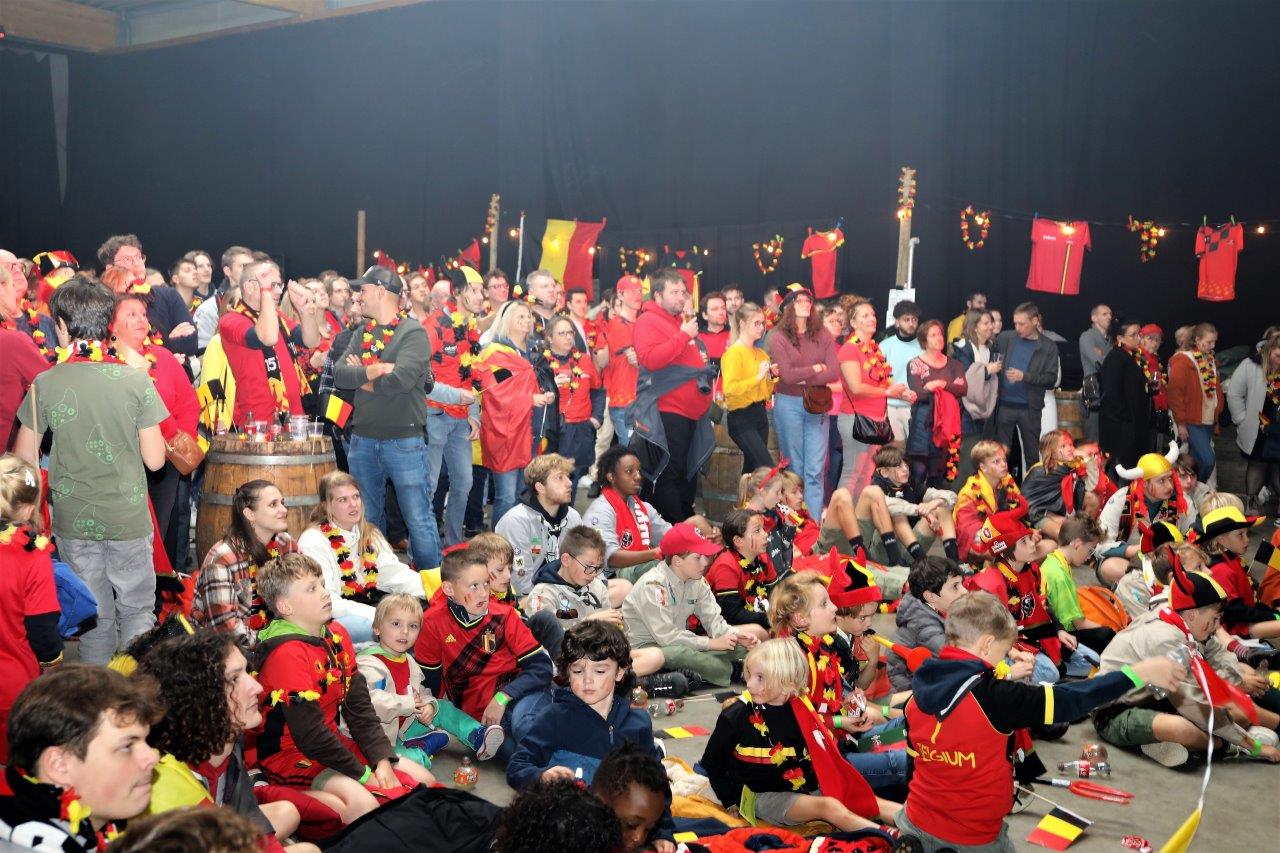 De sfeer zat er aanvankelijk goed in en de aanwezigen waren uitgedost in de kleuren van onze nationale ploeg.