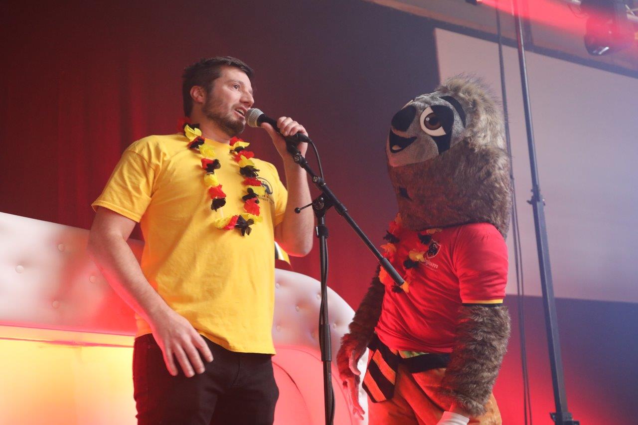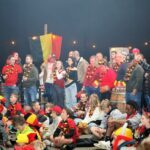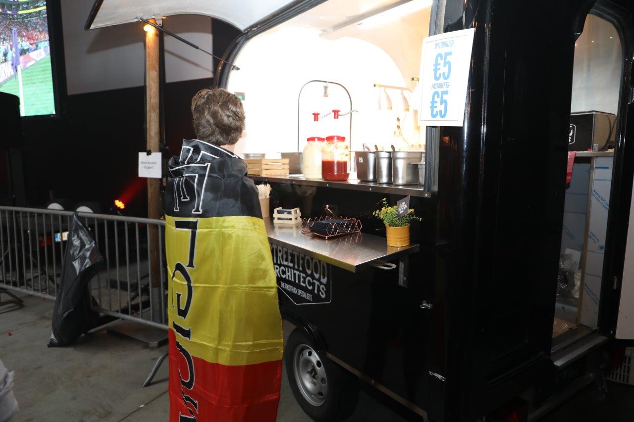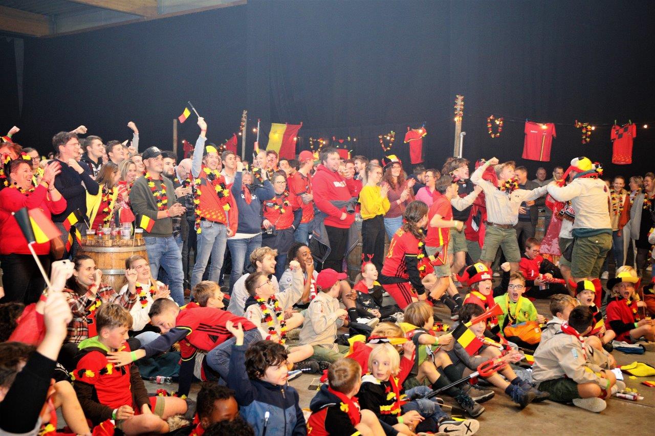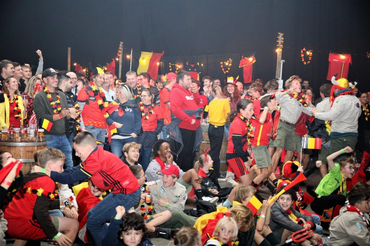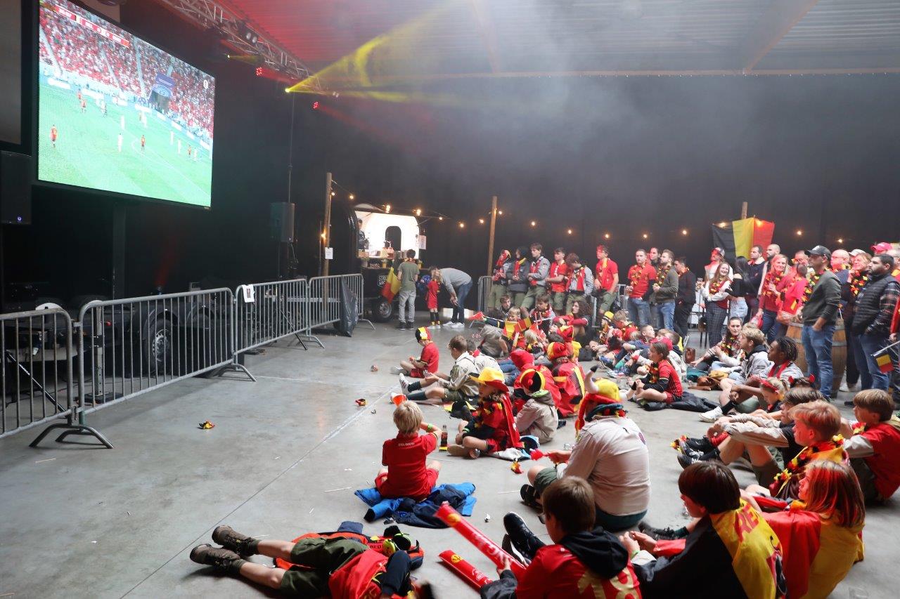 De sfeer zat er aanvankelijk goed in en de aanwezigen waren uitgedost in de kleuren van onze nationale ploeg.