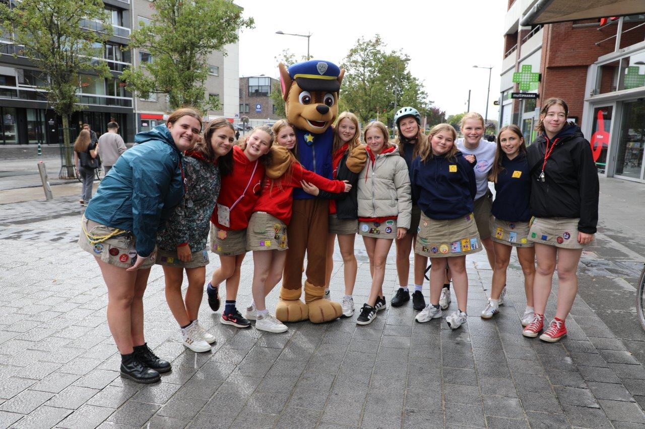 Chase van PAW Patrol ontving op zijn beurt de kinderen aan het Niniaplein, richting Oud Stadhuis speelde de harmonie KEVA uit Aspelare.