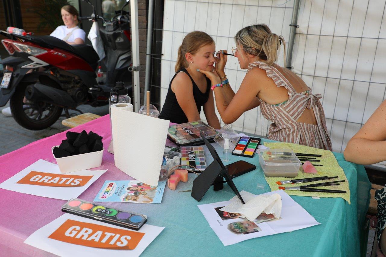 De kinderen konden zich dan weer uitleven op enkele springkastelen, maar ook de fontein bleek een aantrekkingspool om de nodige verfrissing op te doen.