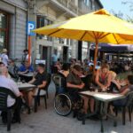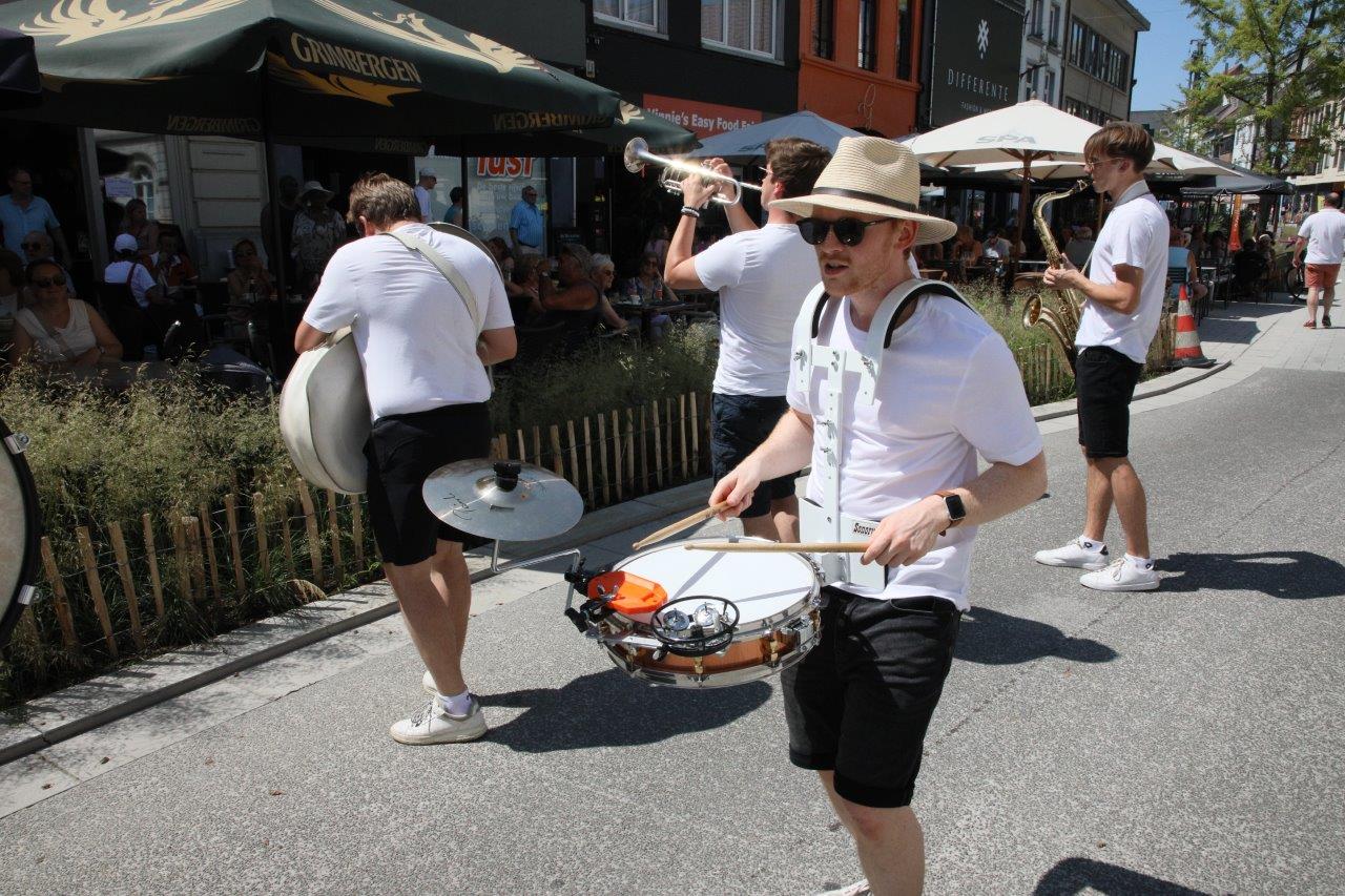 Een orkestje ging de verschillende terrasjes langs en speelde opzwepende deuntjes in de winkelstraat.