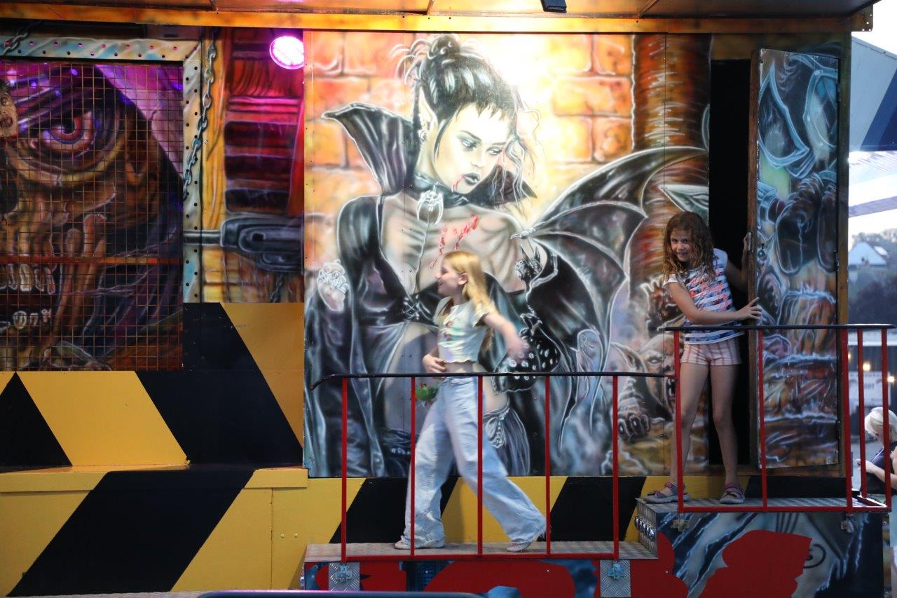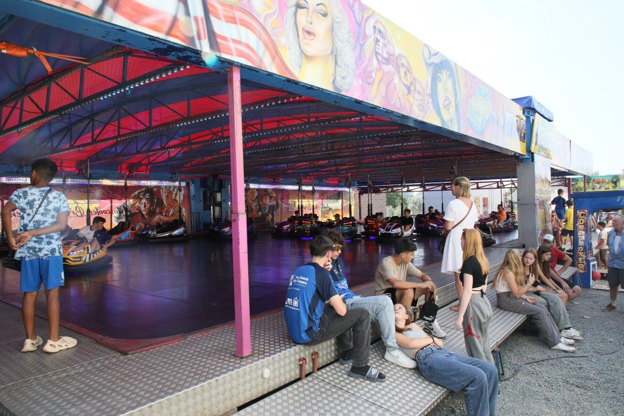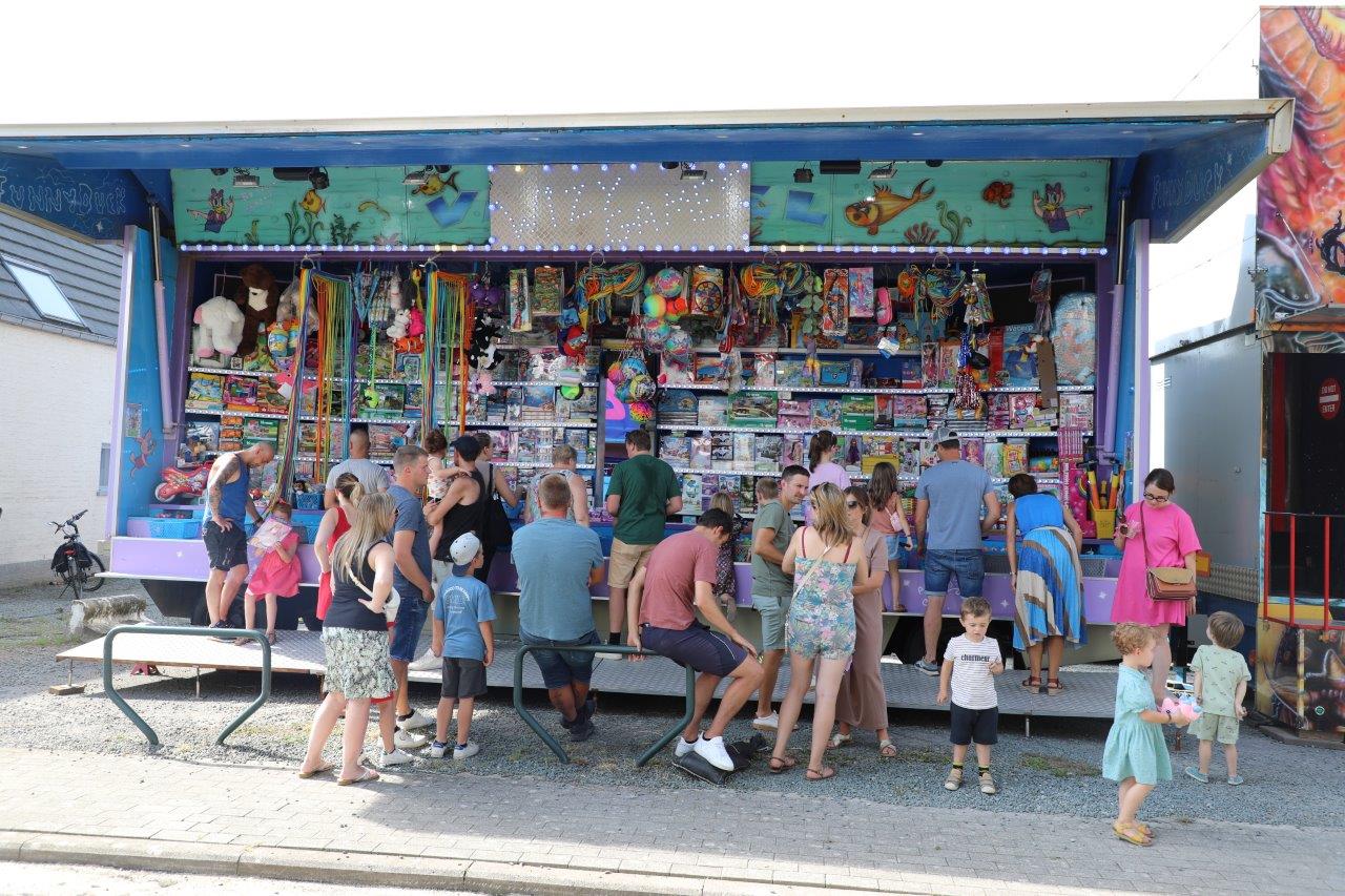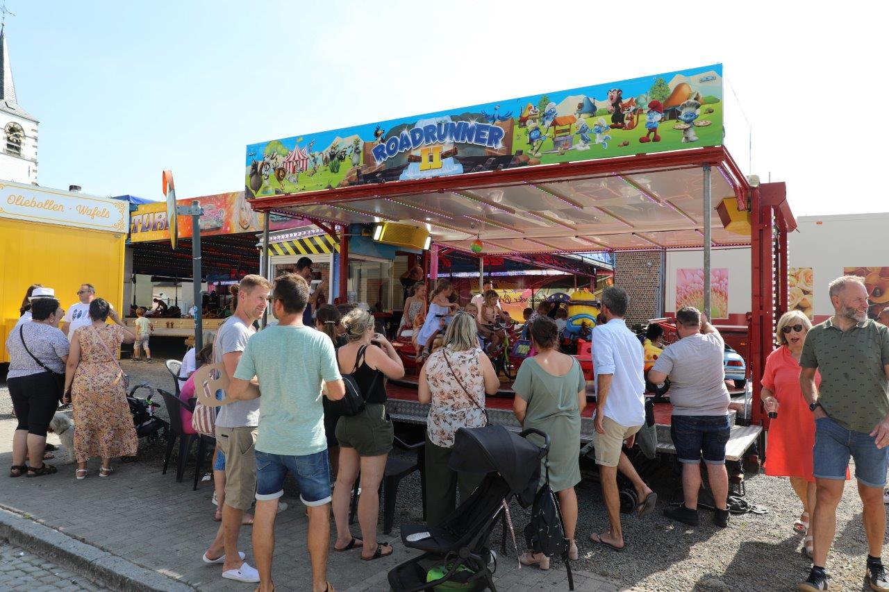 Het was druk in de omgeving van het dorpsplein, met het imposante witte kerkgebouw als centraal punt. Voor klein en groot stonden daar verschillende kermisattracties opgesteld.