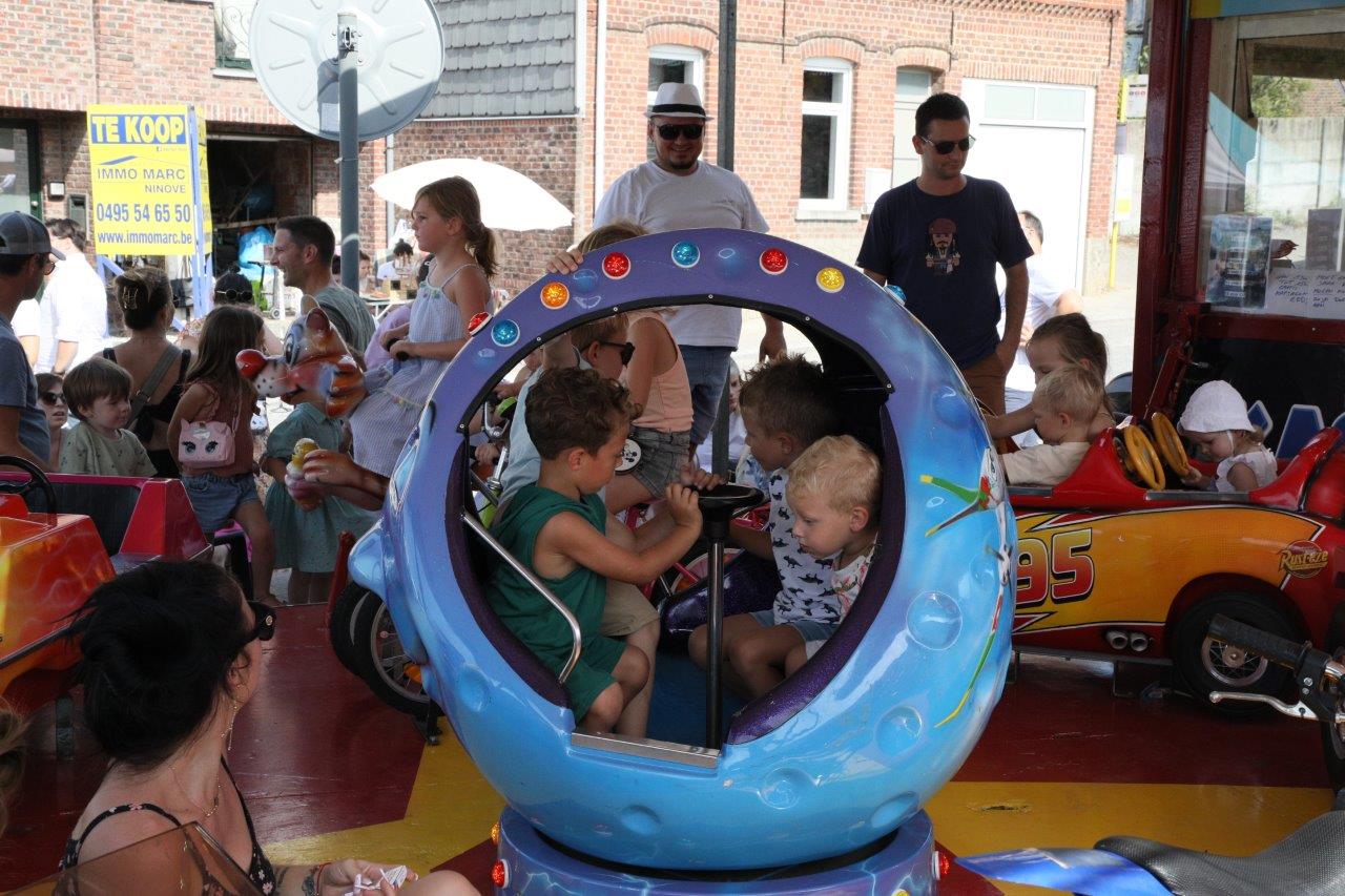 De kinderen konden tussen 14 en 16 uur een gratis ritje maken op de kindermolen, hen aangeboden door kapsalon Eddy.