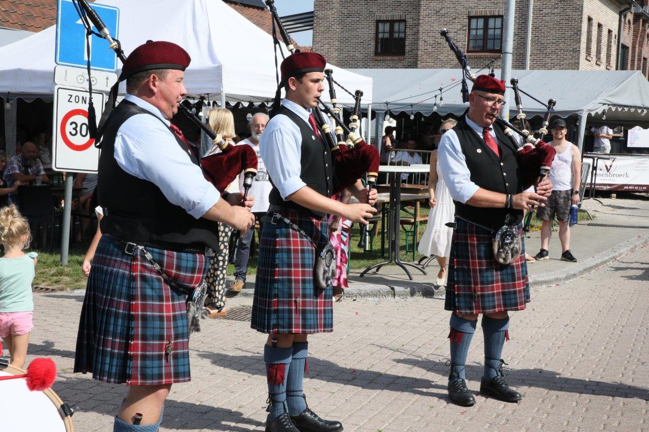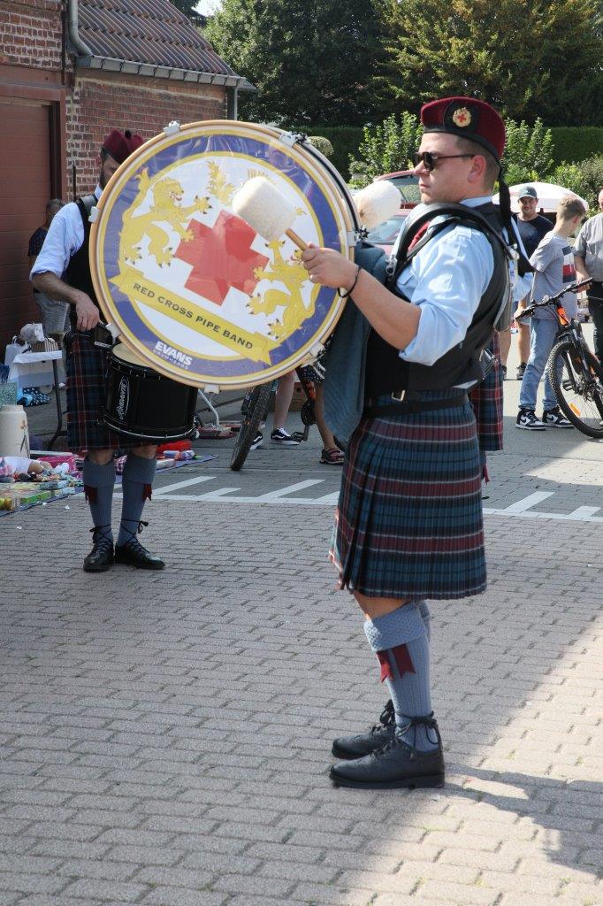 De ‘Flanders Red Cross Pipe Band’ opende de muzikale namiddag op de rommelmarkt en de kermis. Deze doedelzakband bestaat al meer dan 10 jaar en telt een twintigtal leden, allen vrijwilligers van het Rode Kruis.