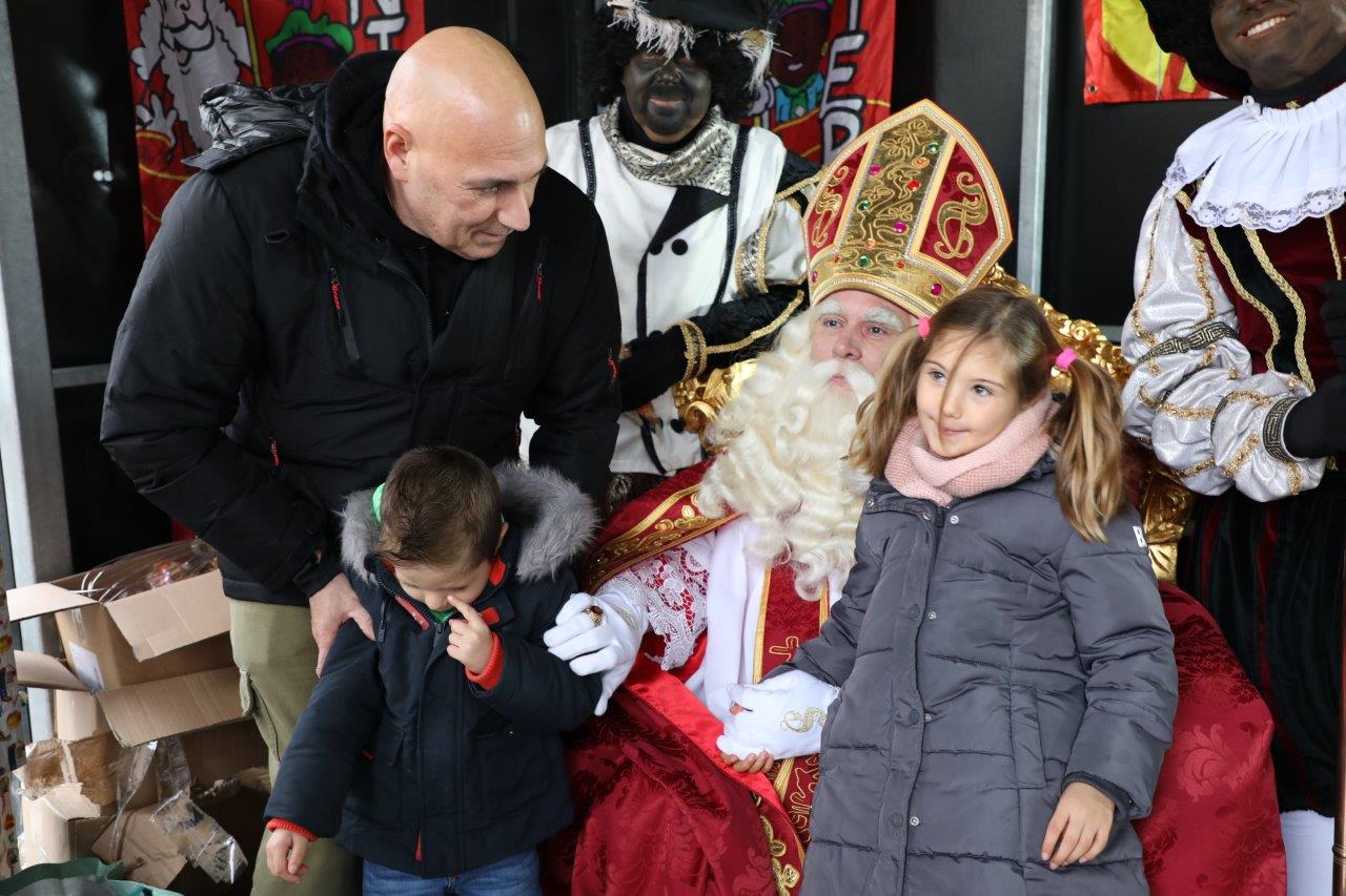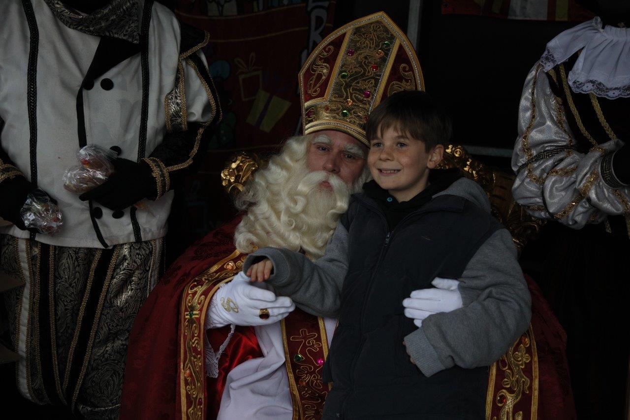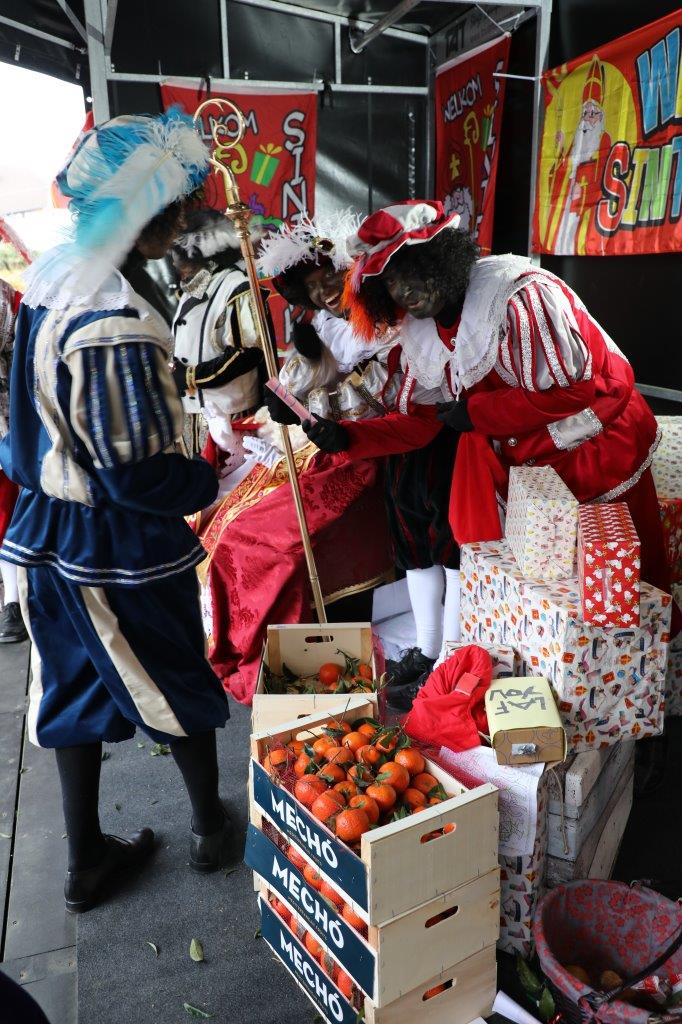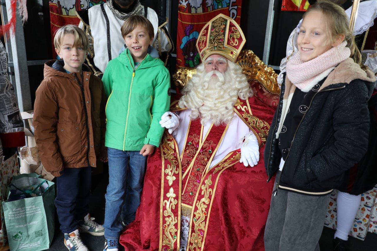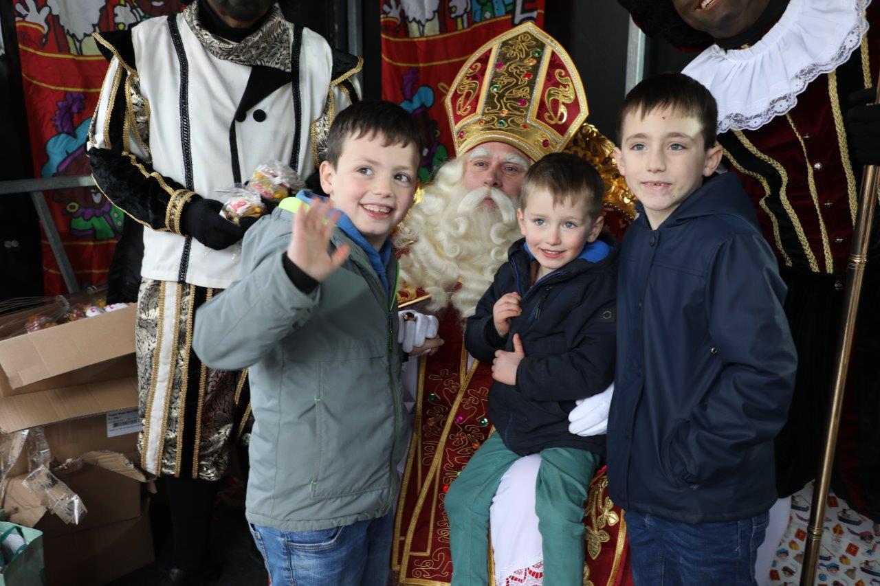 Na de podiumshow mochten alle kinderen een zakje snoep afhalen bij de Sint en hem hun lijst met wensen overhandigen.