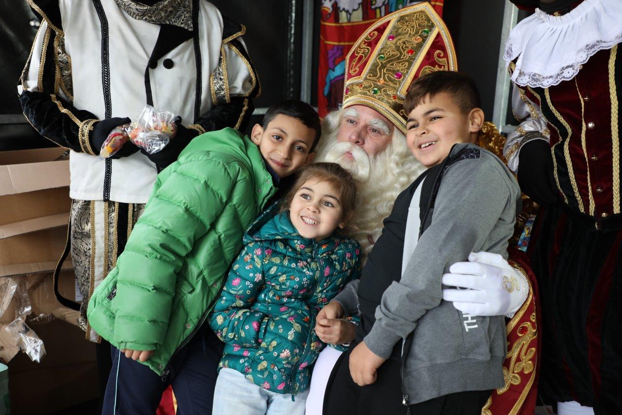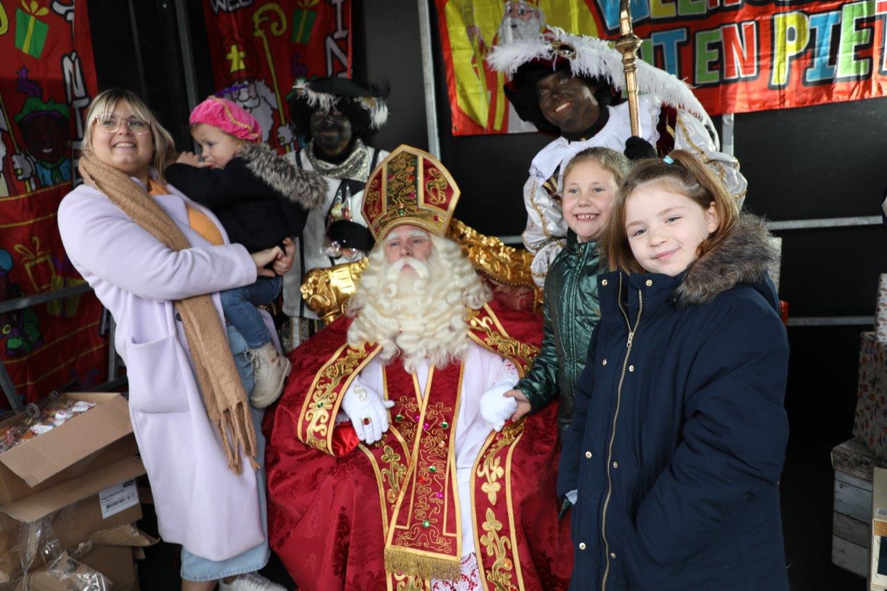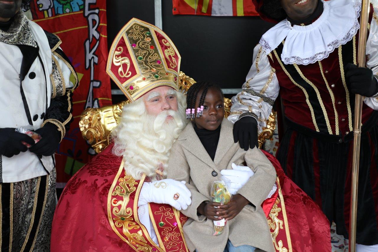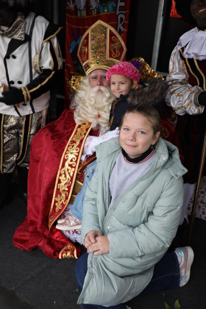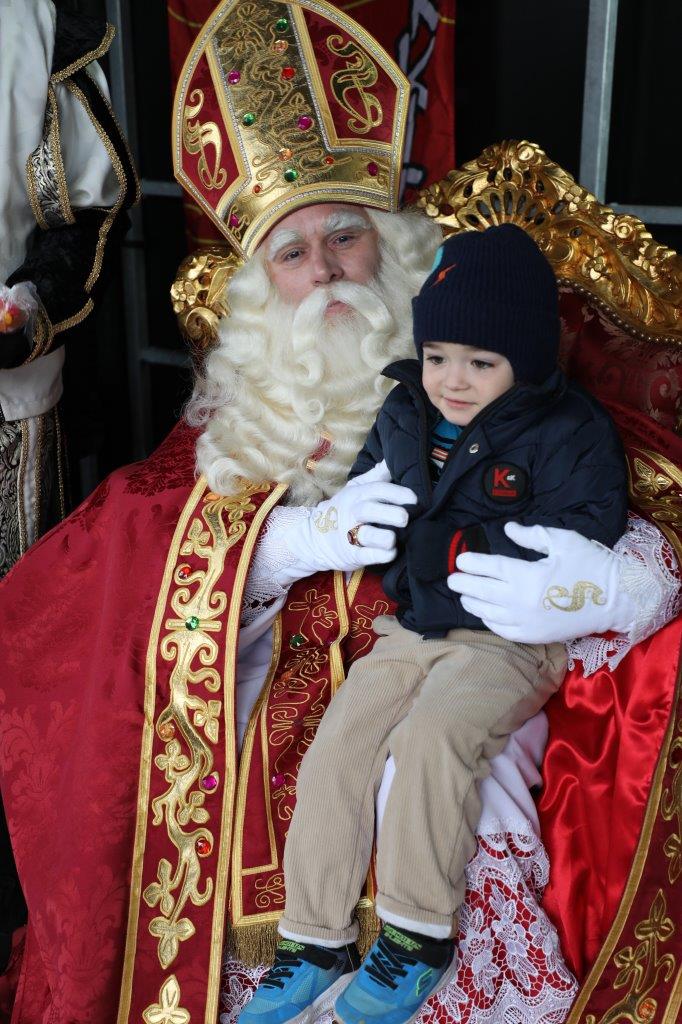 Na de podiumshow mochten alle kinderen een zakje snoep afhalen bij de Sint en hem hun lijst met wensen overhandigen.