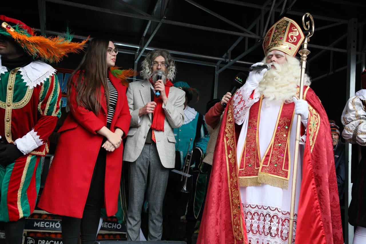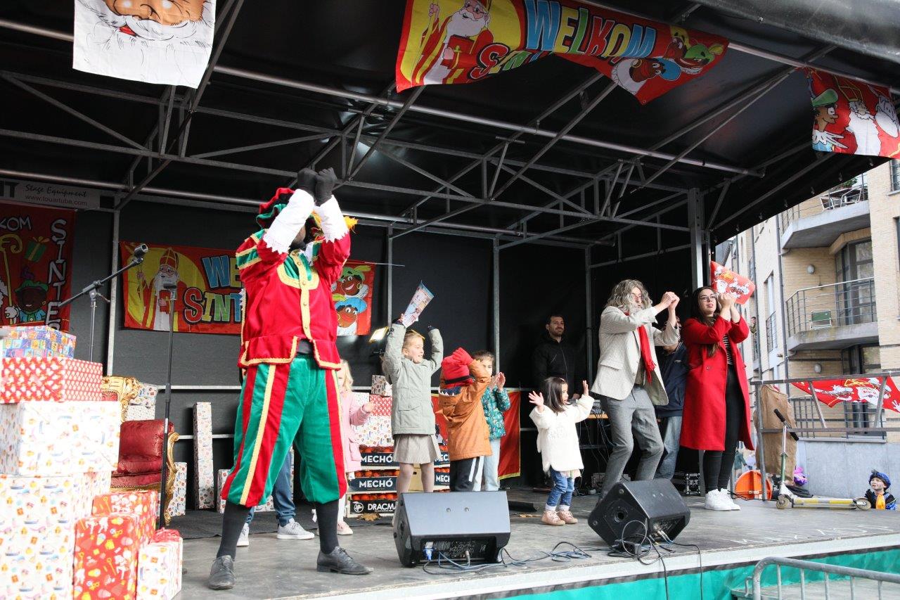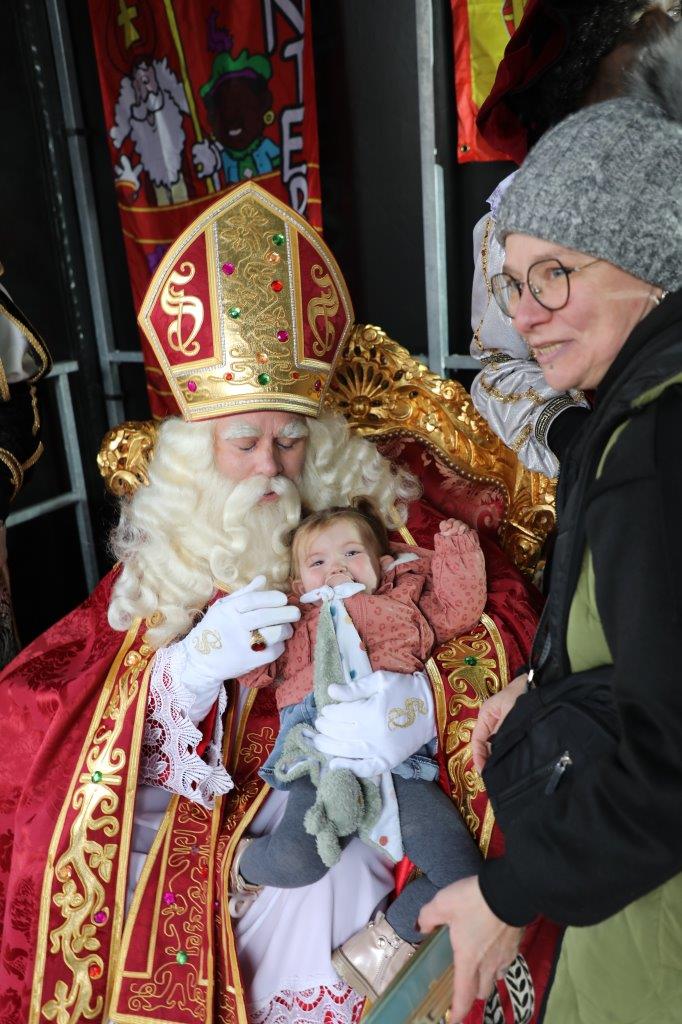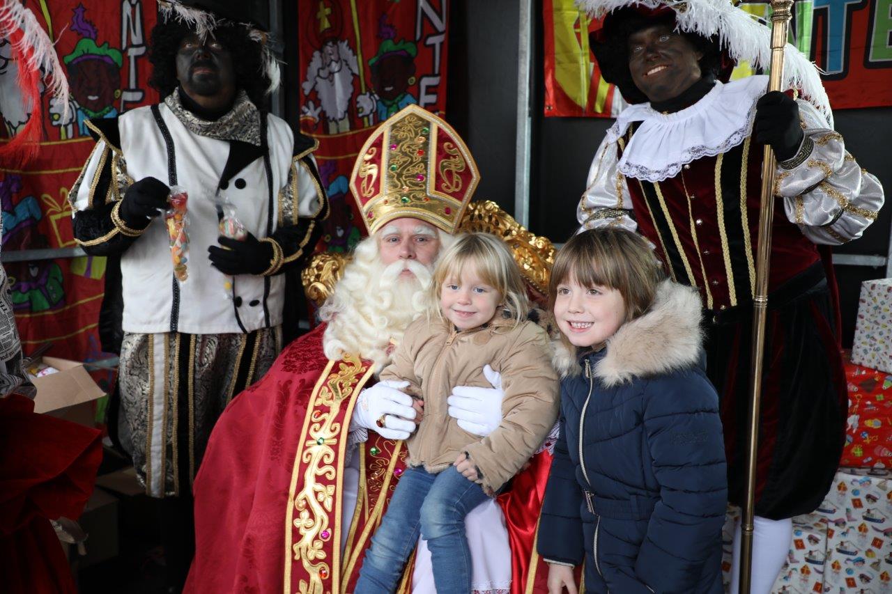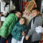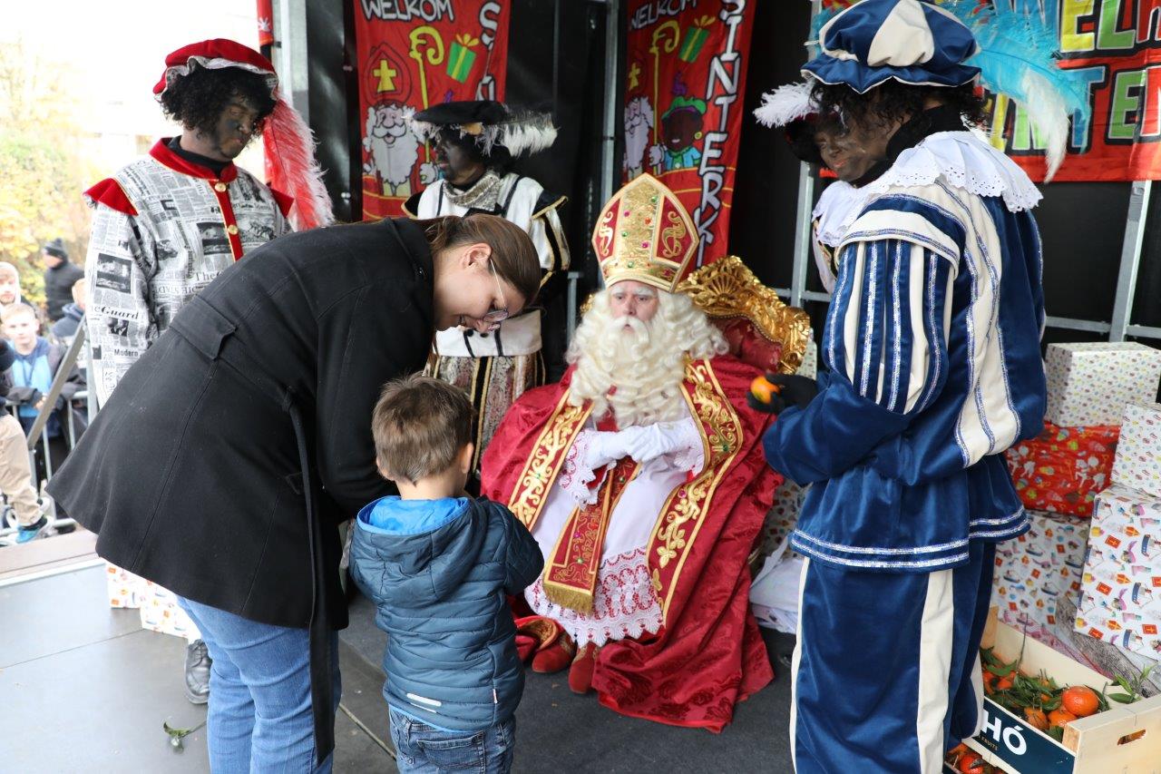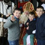 Na de podiumshow mochten alle kinderen een zakje snoep afhalen bij de Sint en hem hun lijst met wensen overhandigen.