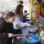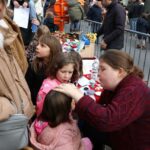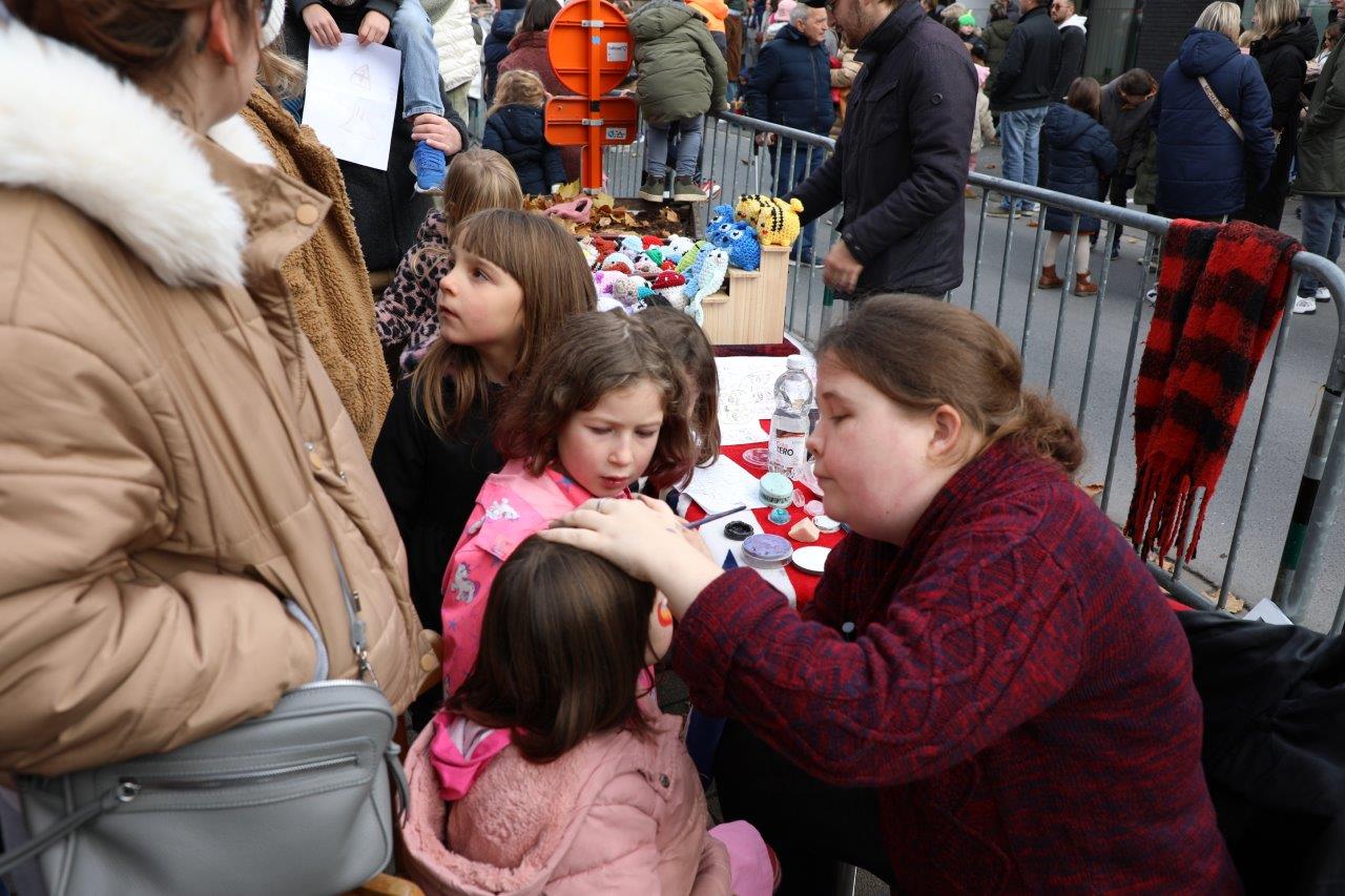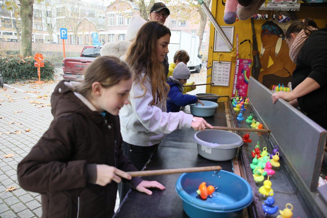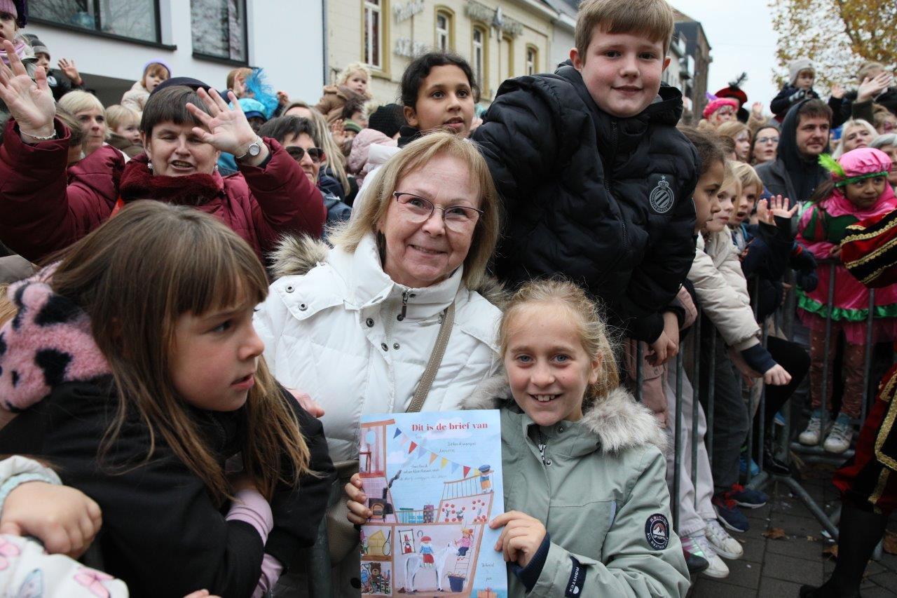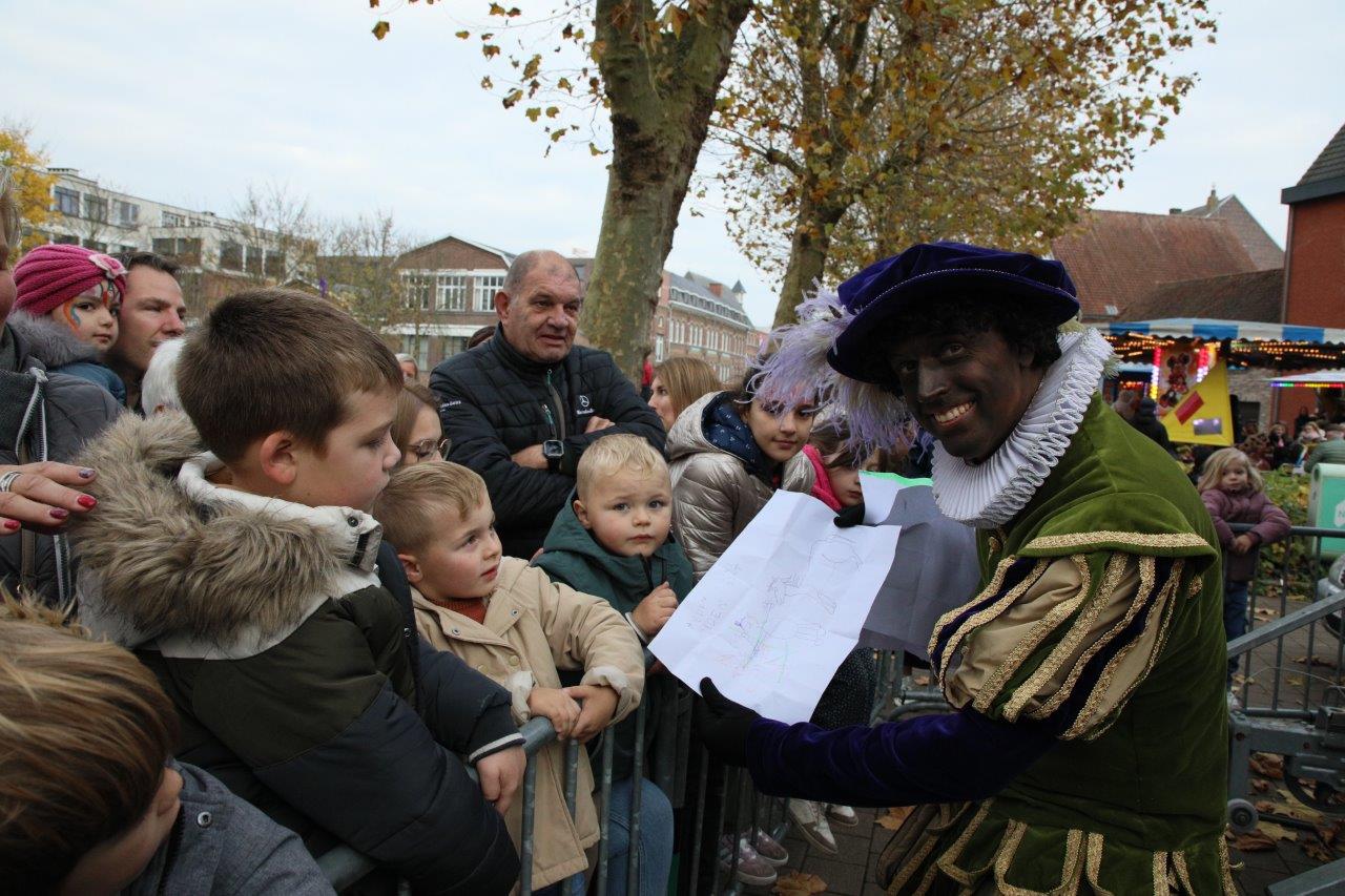 Na de podiumshow mochten alle kinderen een zakje snoep afhalen bij de Sint en hem hun lijst met wensen overhandigen.
