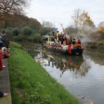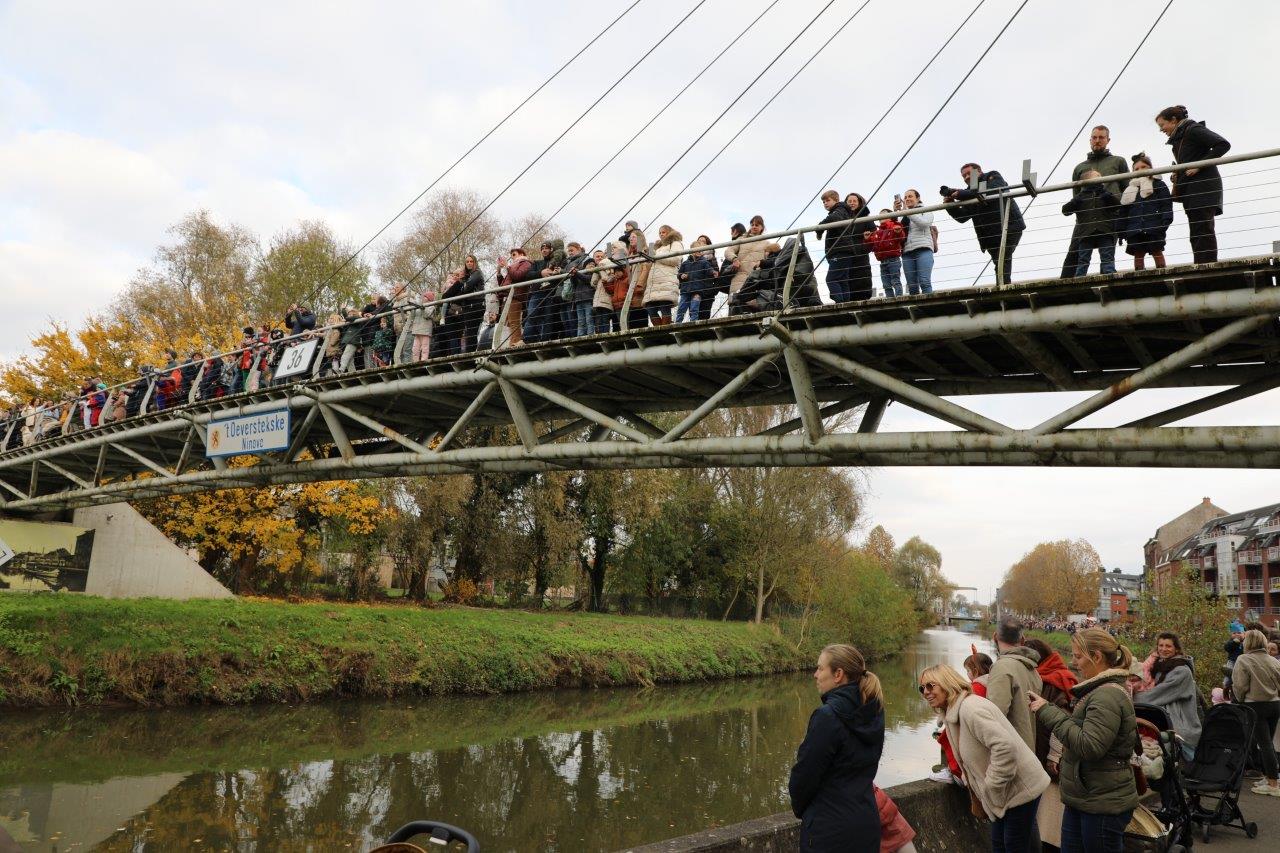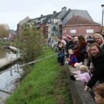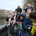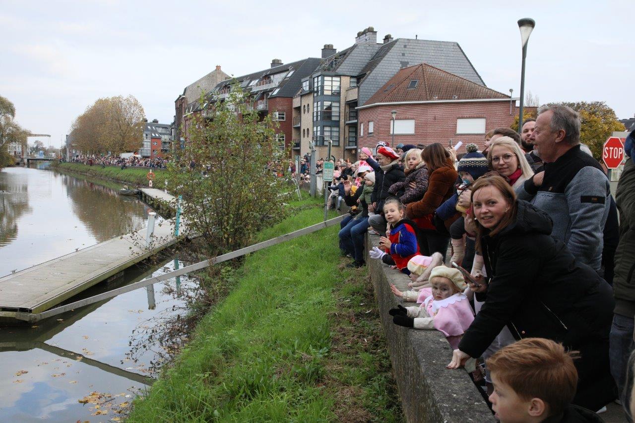 Door de hoge waterstand van de Dender, kon de Sint vorig jaar niet aanmeren in de wortelstad. Dit jaar was dit terug mogelijk, er was dan ook een massa volk opgedaagd om de Sint te verwelkomen.