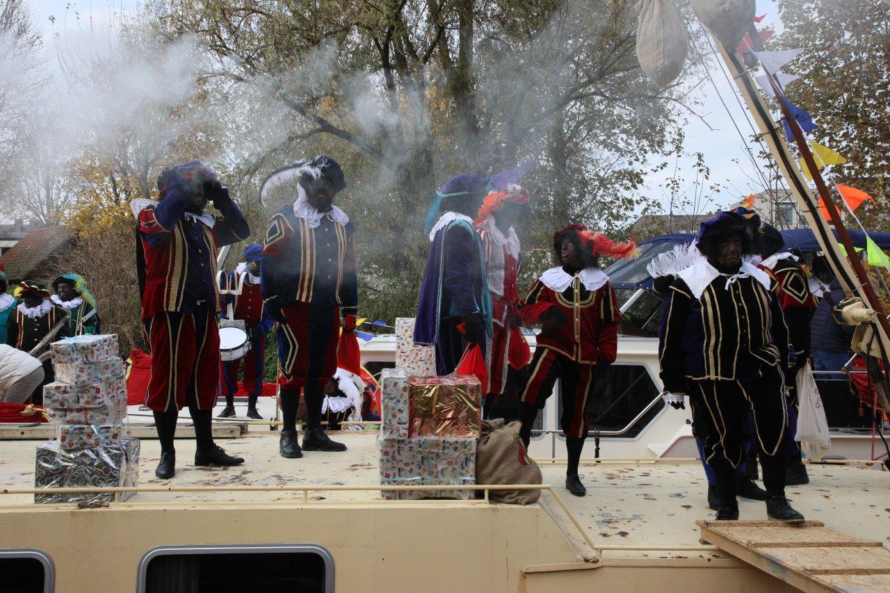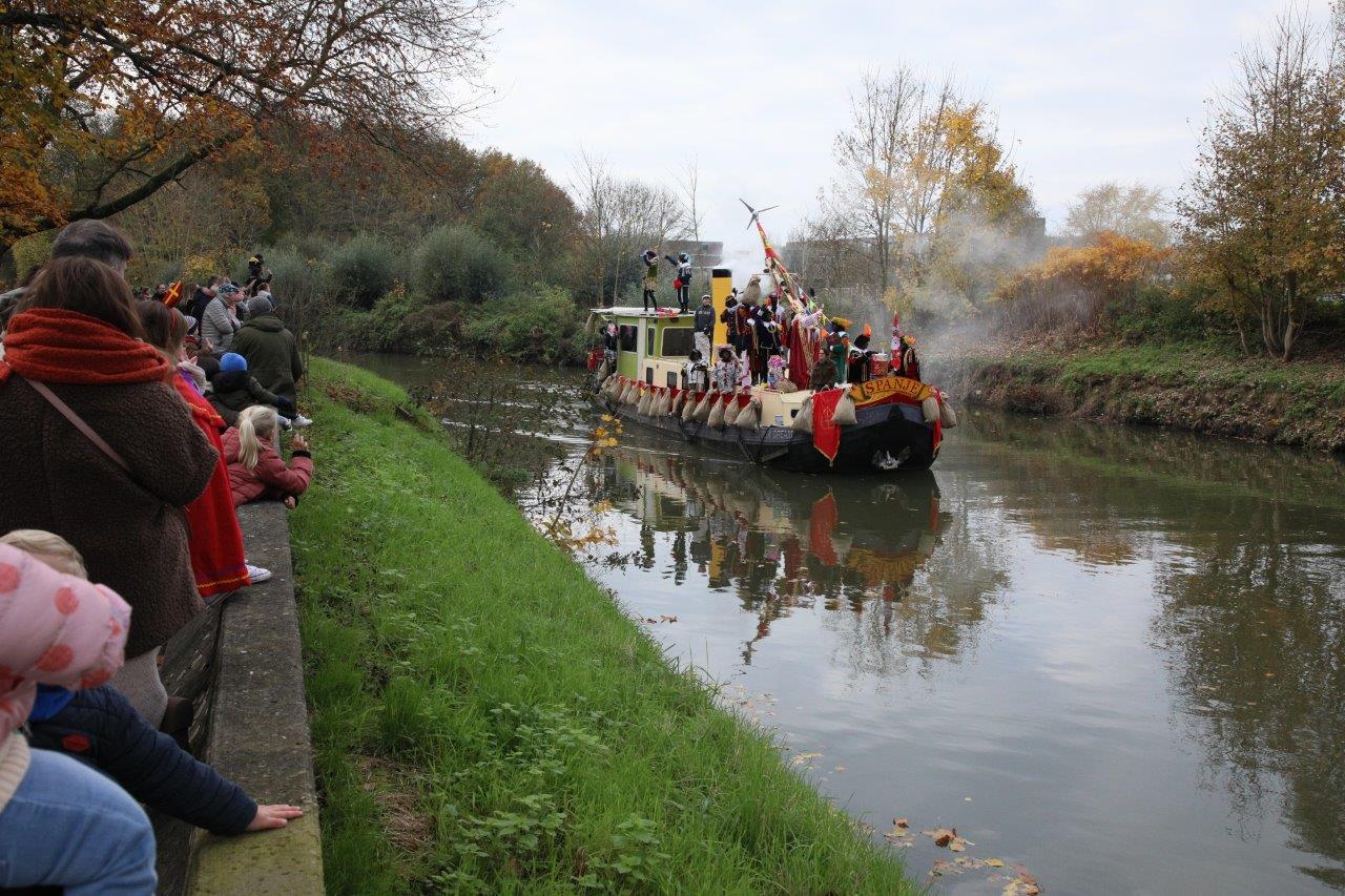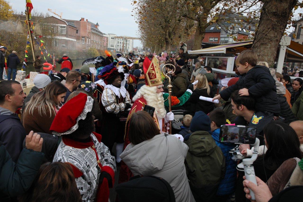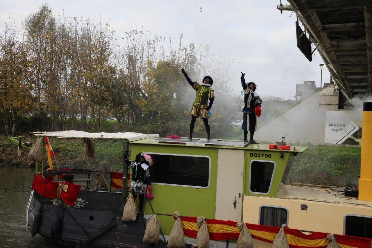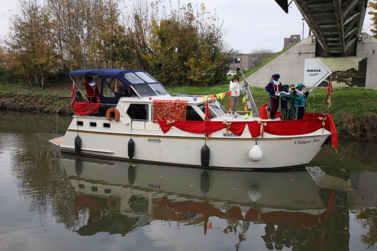 Rond 14 uur meerden de muziekboot en de pietenfanfare aan ter hoogte van de Denderkaai. Burgemeester Tania De Jonge en haar schepenen verwelkomden de goedheilige man en zijn 20 roetpieten. De Sint kon haar melden, dat er dit jaar geen stoute kinderen waren in Ninove.