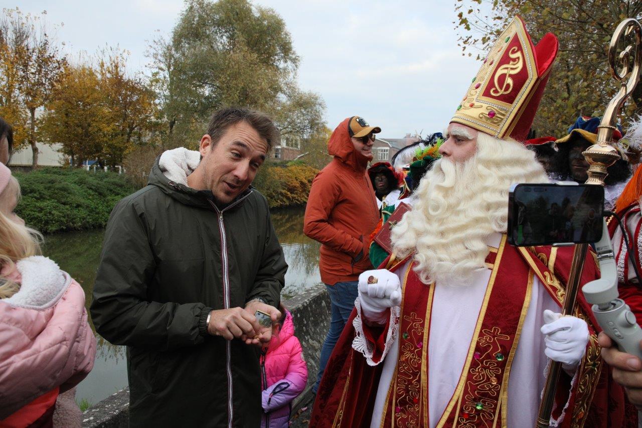 Alle sinterklaasliefhebbers, groot en klein, braaf en iets minder braaf, waren afgezakt naar de Denderkaai. Vooral de kindjes waren in groten getale van de partij om de Sint te verwelkomen. Medeorganisator Hubert van café Den Belleman zag dat het goed was en kon de komst van de Sint in alle rust verbeiden.