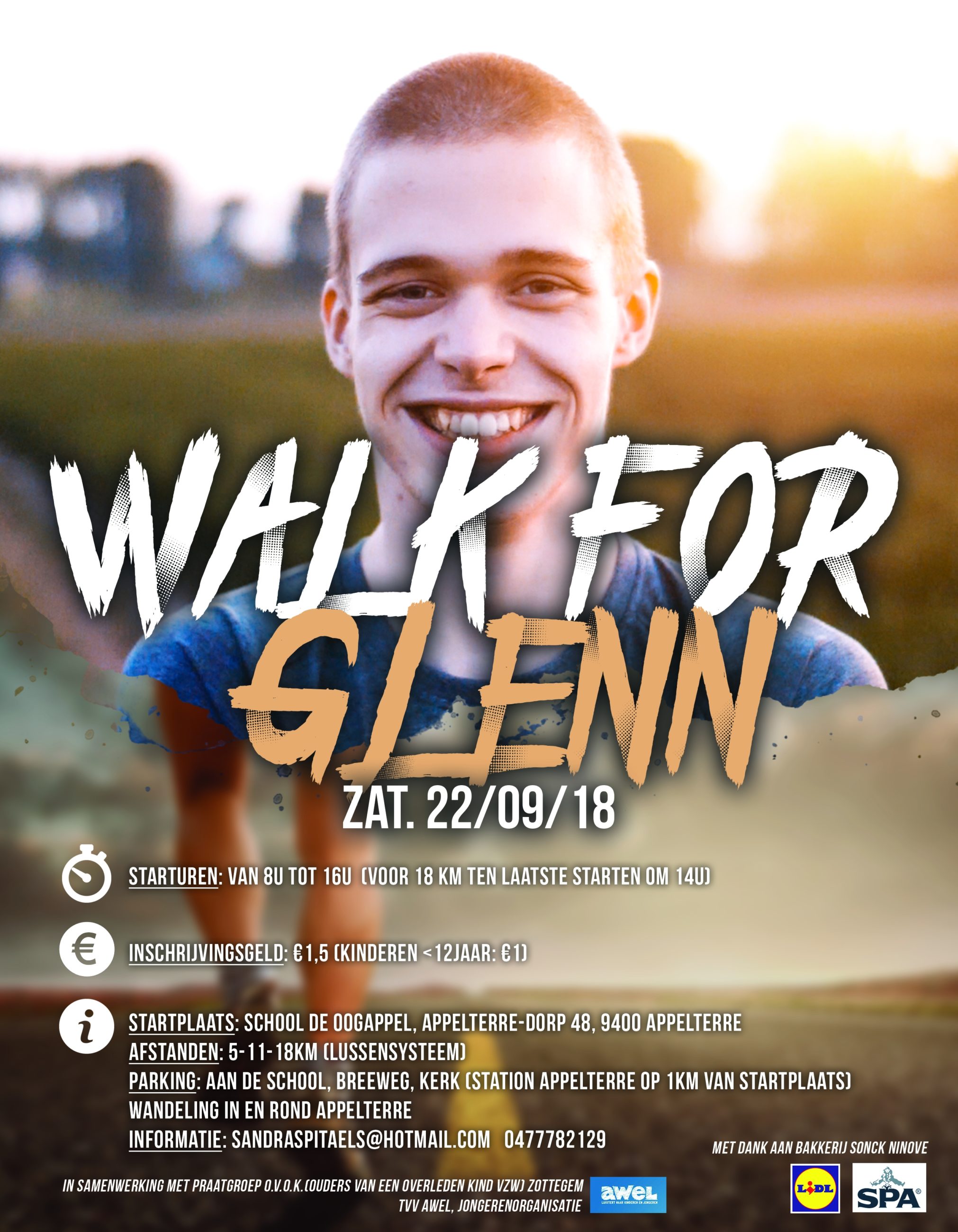 APPELTERRE – De ouders van Glenn De Cooman organiseren zaterdag 22 september een wandeling: ‘Walk for Glenn’. Zij doen dit als herinnering aan hem en ten voordele van Awel.