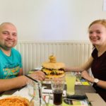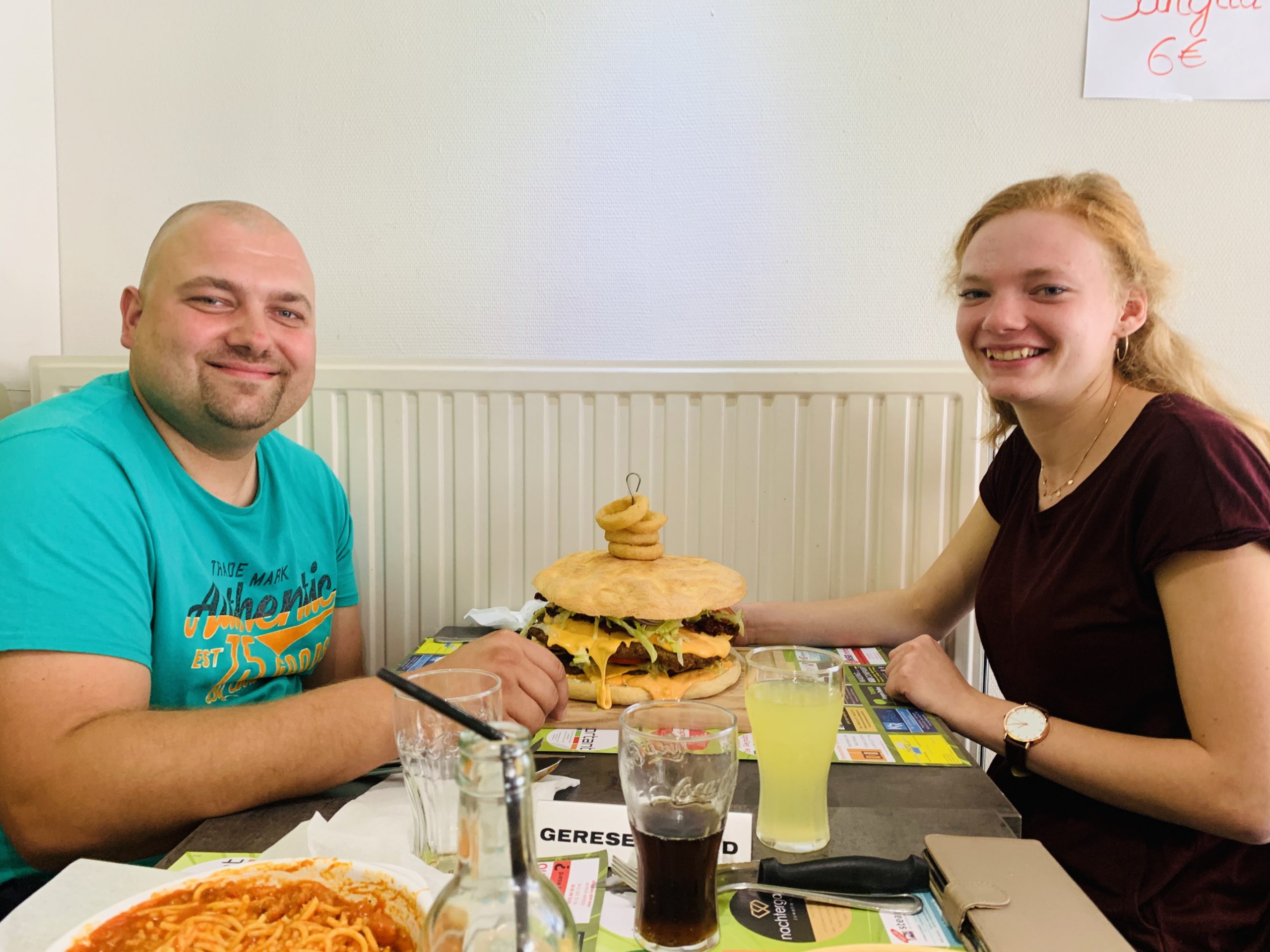 De ogen waren kennelijk toch groter dan de buik. Maar ze betaalden met plezier € 35 voor de reuzenhamburger.