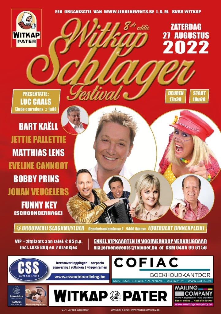 NINOVE – De 8ste editie van het Witkap Schlagerfestival belooft zaterdag 27 augustus een topeditie te worden op de terreinen van de brouwerij Slaghmuylder.