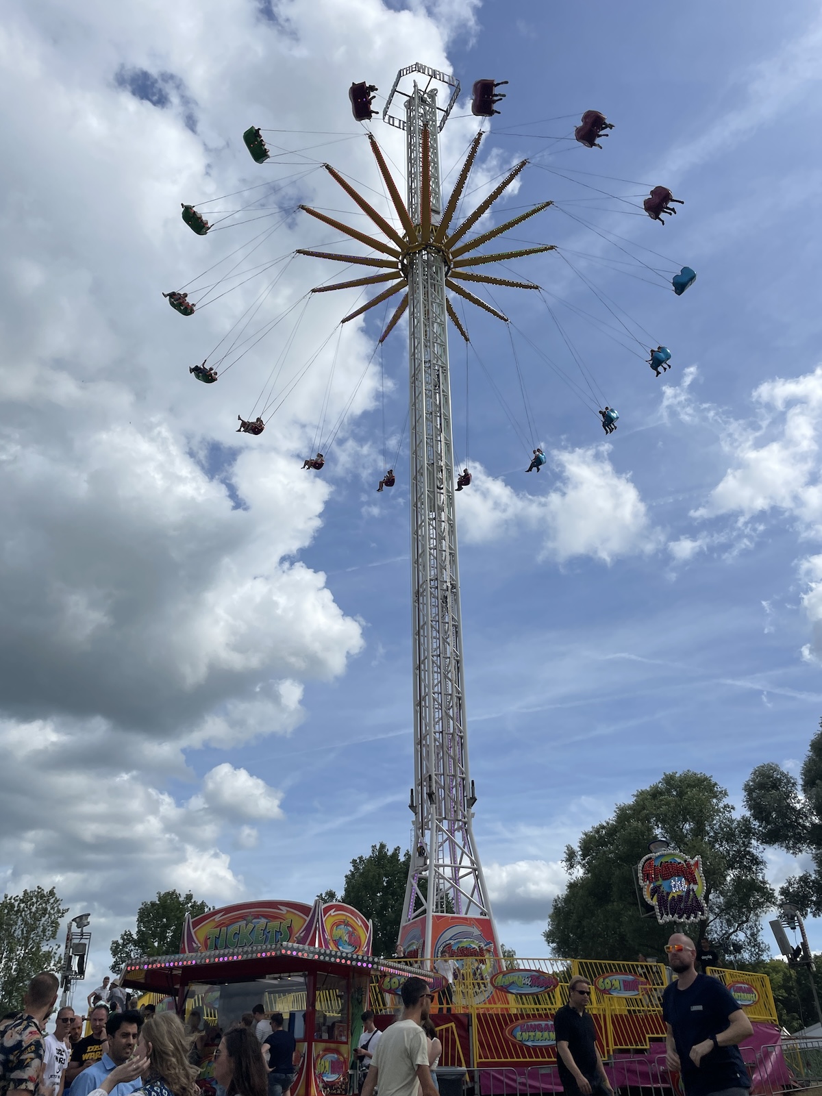 De 30 ton zware zweeftoren zal je zien staan rechtover de tent, naast ’t Oeverstekske. “Een festival, dat is muziek, iets eten, iets drinken en allerlei dingen meemaken en beleven. Als je geen hoogtevrees hebt, zal die zweeftoren toch tof zijn met een uitzicht boven alles heen, tot in Meerbeke en Outer.”
