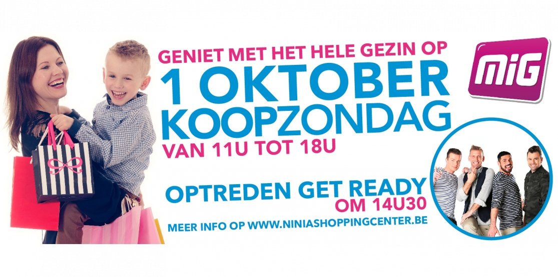 Op de Comeos Koopzondag zet het Shoppingcenter zijn deuren open en zijn alle winkels open van 11u tot 18u. Get Ready zal om 14u30 een optreden brengen op het Ninia plein, toegang is gratis en aansluitend een Meet en Greet binnen in het Shoppingcenter. Iedereen van harte welkom!