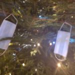 Voor alle duidelijkheid: de mondmaskers in de boom zijn splinternieuwe aangekochte exemplaren, recht uit de doos opgehangen.