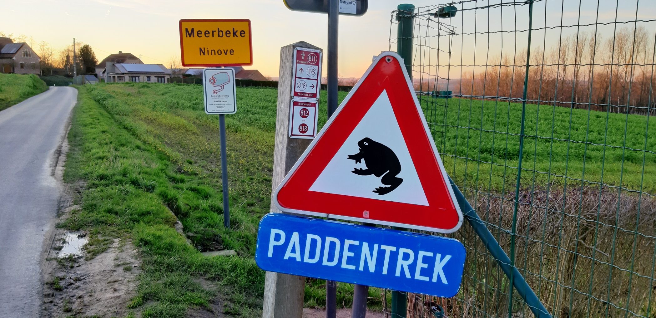 Ook in Ninove helpen vele vrijwillige handen de dieren om veilig de overkant van de straat te bereiken. Als automobilist kan je meewerken door omzichtig te rijden als je het bord ‘paddentrek’ opmerkt.