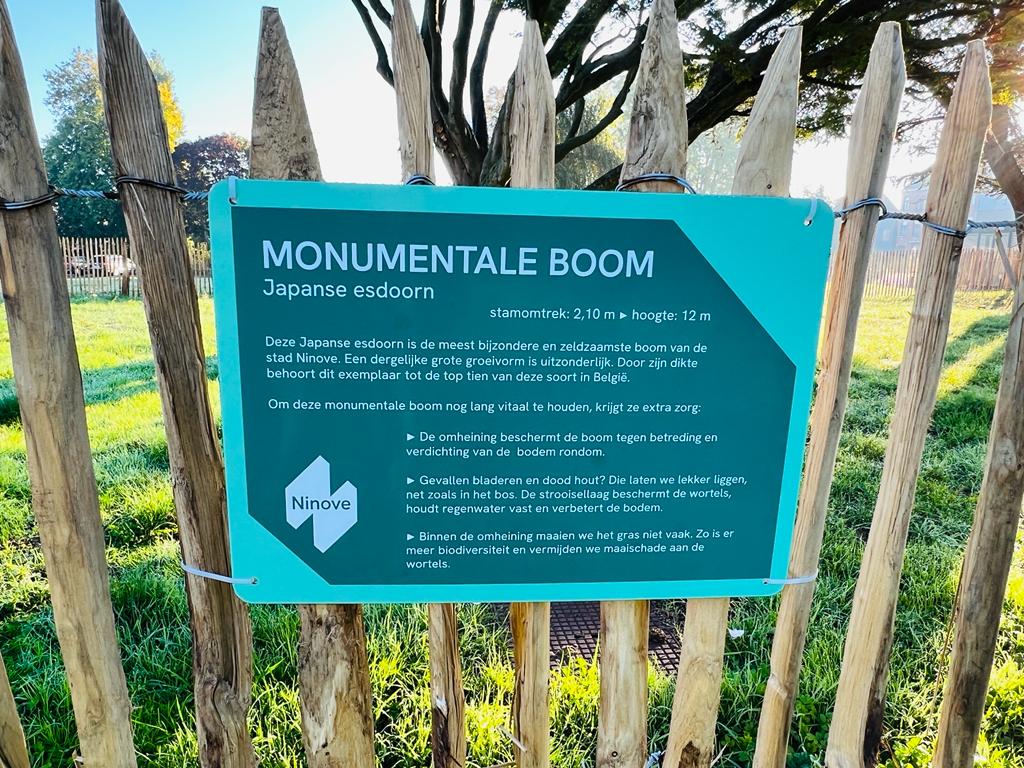 Een dergelijke grote groeivorm is uitzonderlijk en enig in zijn soort in Ninove. Door zijn hoogte van 12 m en zijn stamomtrek van 210 cm, behoort de ‘acer Japonica Ninovensis’ tot de top tien in België.