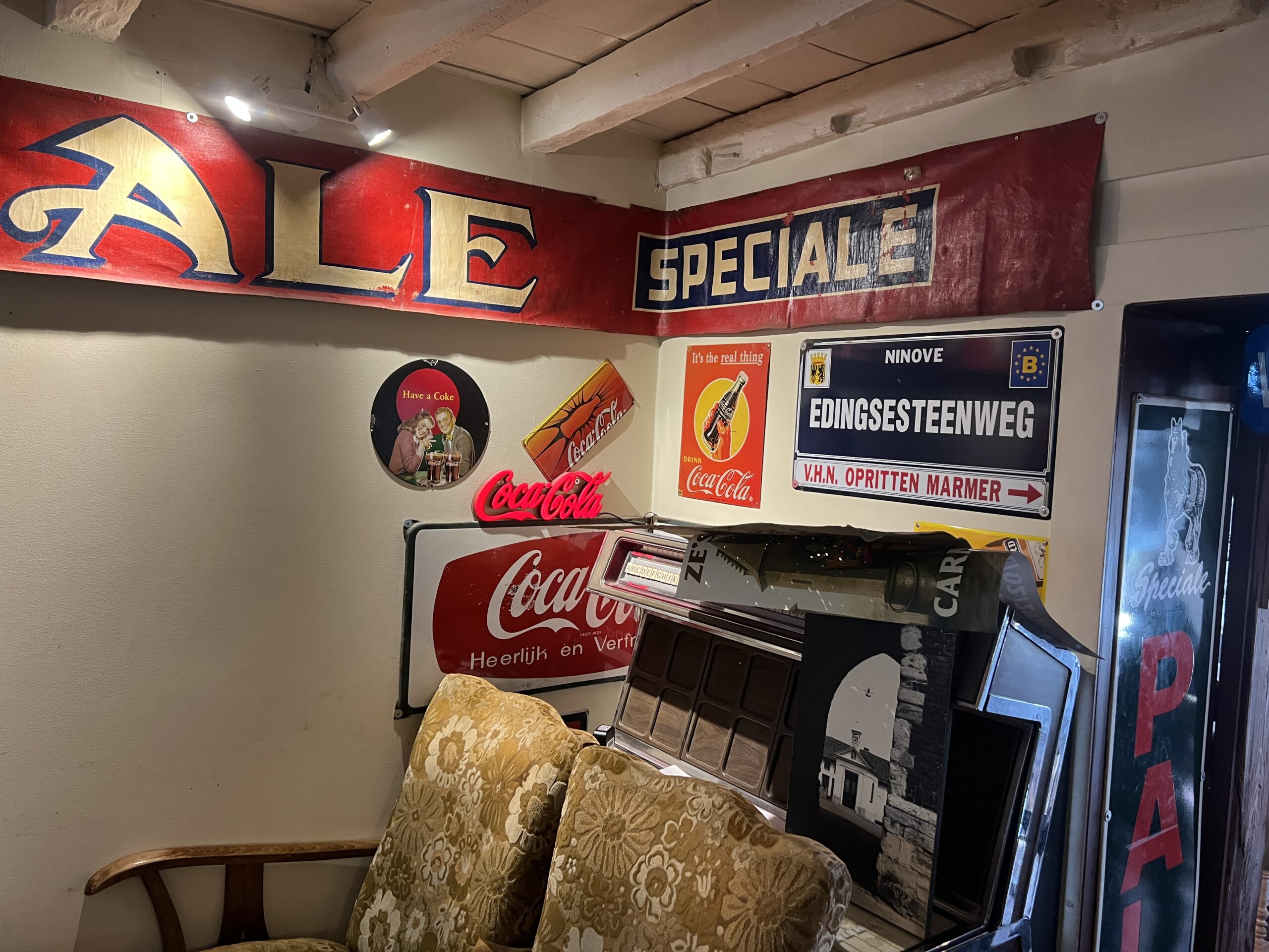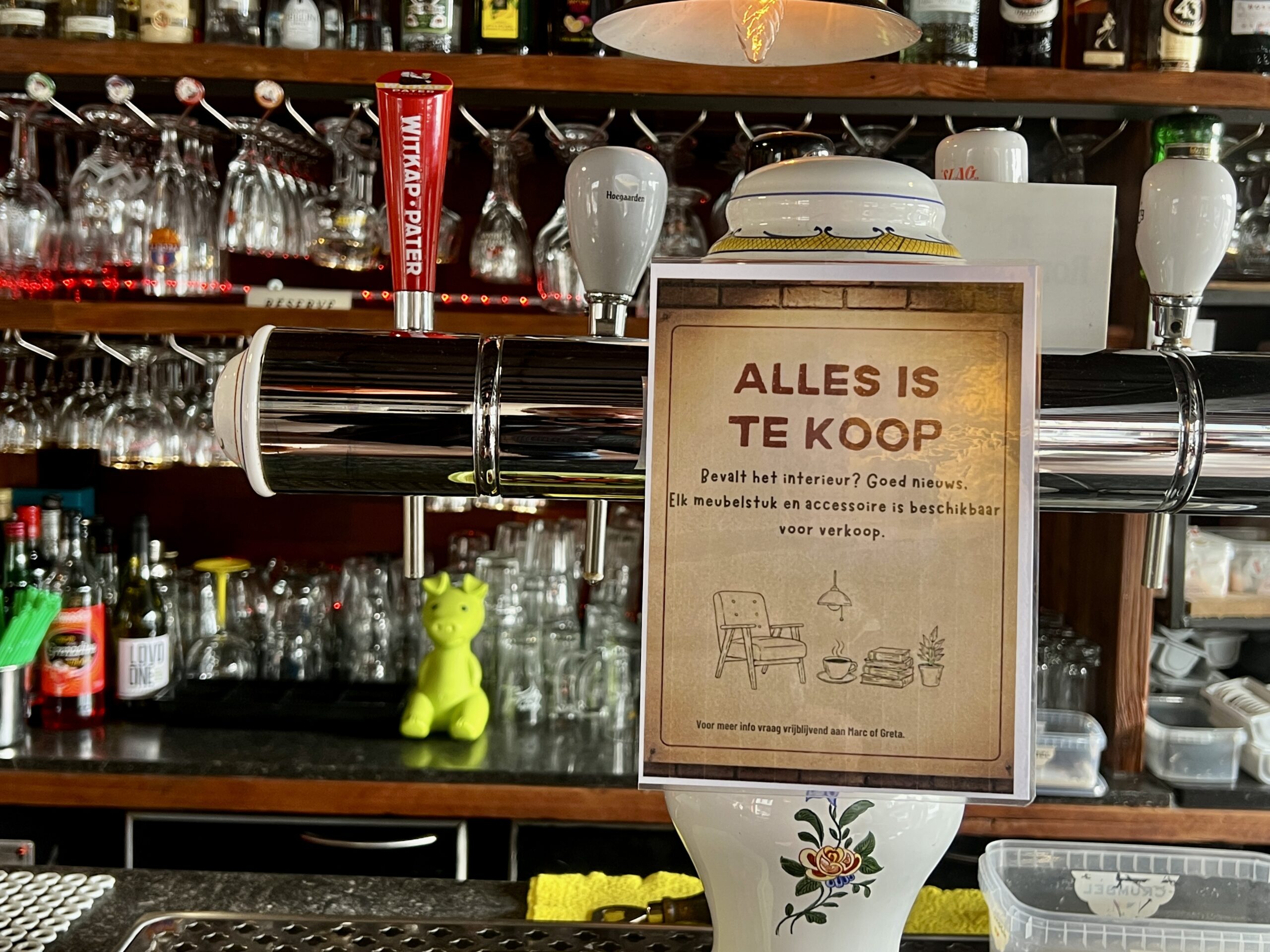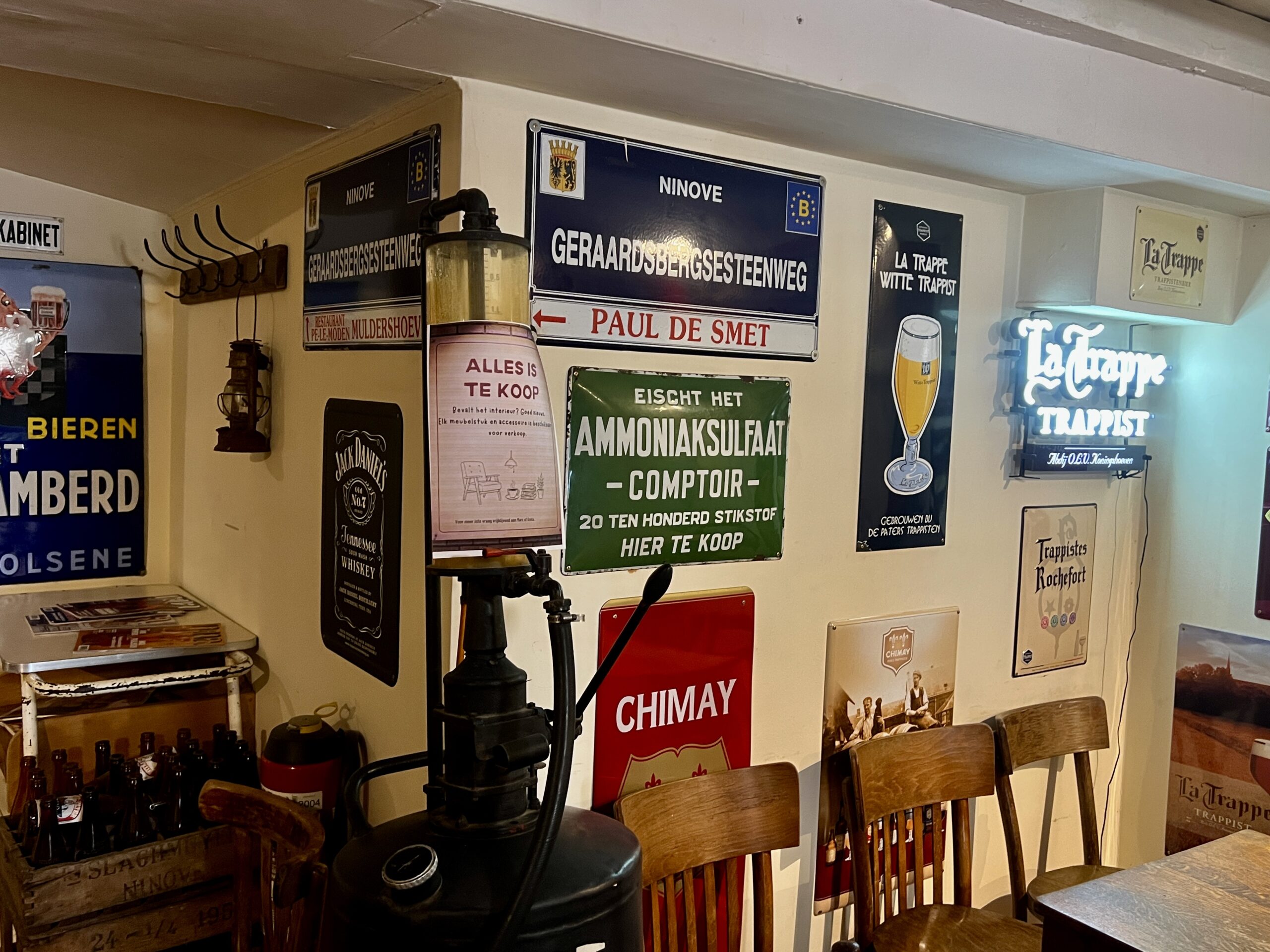 Gedurende al die jaren kon Marc Wets een prachtige collectie authentieke stukken verzamelen: “De tijd is rijp om het gehele interieur te verkopen. Er zijn onder meer unieke emaillen borden, oude muziekinstrumenten en zelfs de authentieke toog staat te koop.”