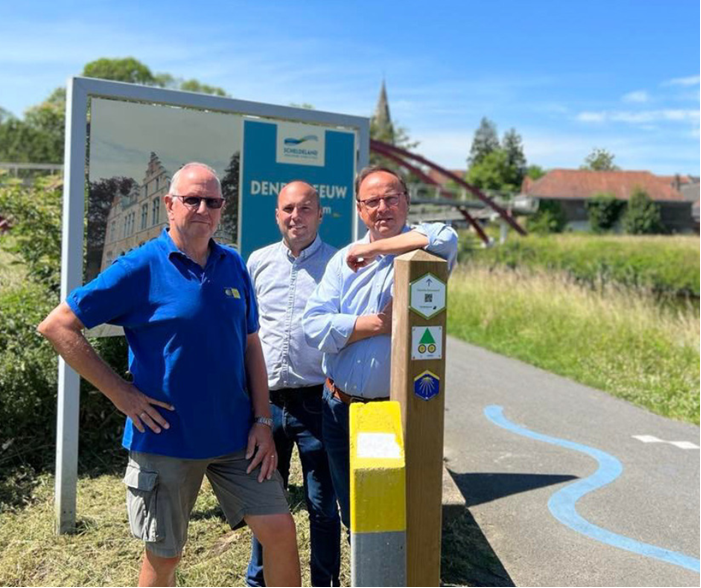 “Toen twee Denderleeuwse vrijwilligers van het Compostellagenootschap ons contacteerden met de vraag om bewegwijzering te plaatsen, hebben we geen seconde getwijfeld”, zegt schepen Jan De Nul. “We zijn dan ook enorm fier, dat we één van de eerste gemeenten zijn die ja zeiden. Voortaan kan je dus via Denderleeuw eenvoudig naar Santiago de Compostela wandelen.”